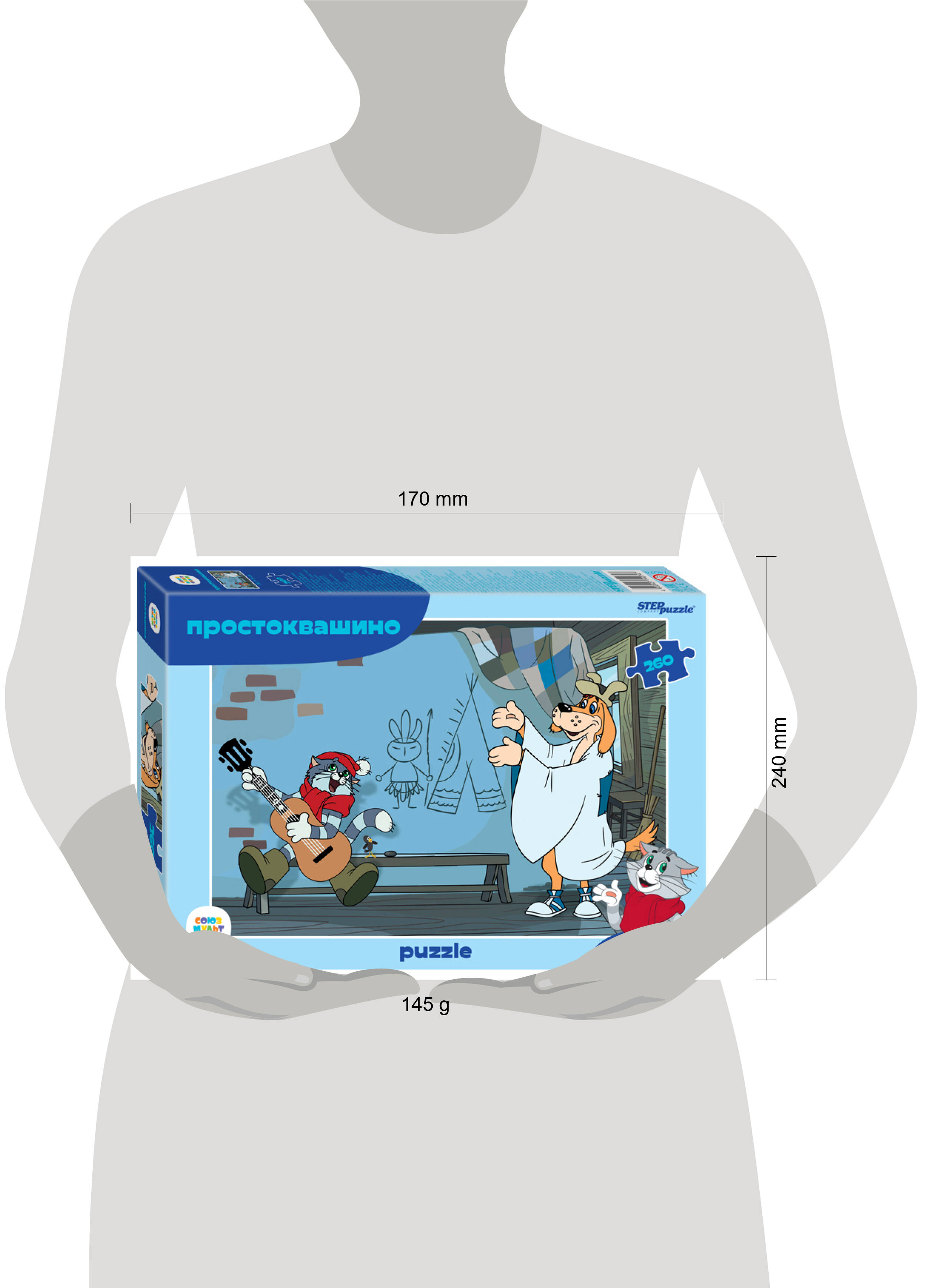 Пазл "Простоквашино" состоит из 260 деталей. В центре картинки мы видим хулиганский вигвам, нарисованный Шариком. А ведь взрослые точно знают, как Шарик назвал "индейскую народную избу". Характеристики пазла: - стандартные детали пазла (2×1,7 см); - размер собранного изображения - 24*34,5 см; - материал - картон; - качественное изображение; - экологически чистые, нетоксичные материалы (компания Step Puzzle гарантирует высокое качество пазла и точность подгонки). Для кого? Пазл подходит для детей от 6 лет. Пазл "Простоквашино" оценят и взрослые, и дети, ведь он сделан по мотивам нестареющего мультфильма. Для комфортной сборки пазла советуем приобрести специальный коврик. Рекомендуем приобрести специальный клей для пазлов, чтобы скрепить детали мозаики между собой и получить цельную картину.