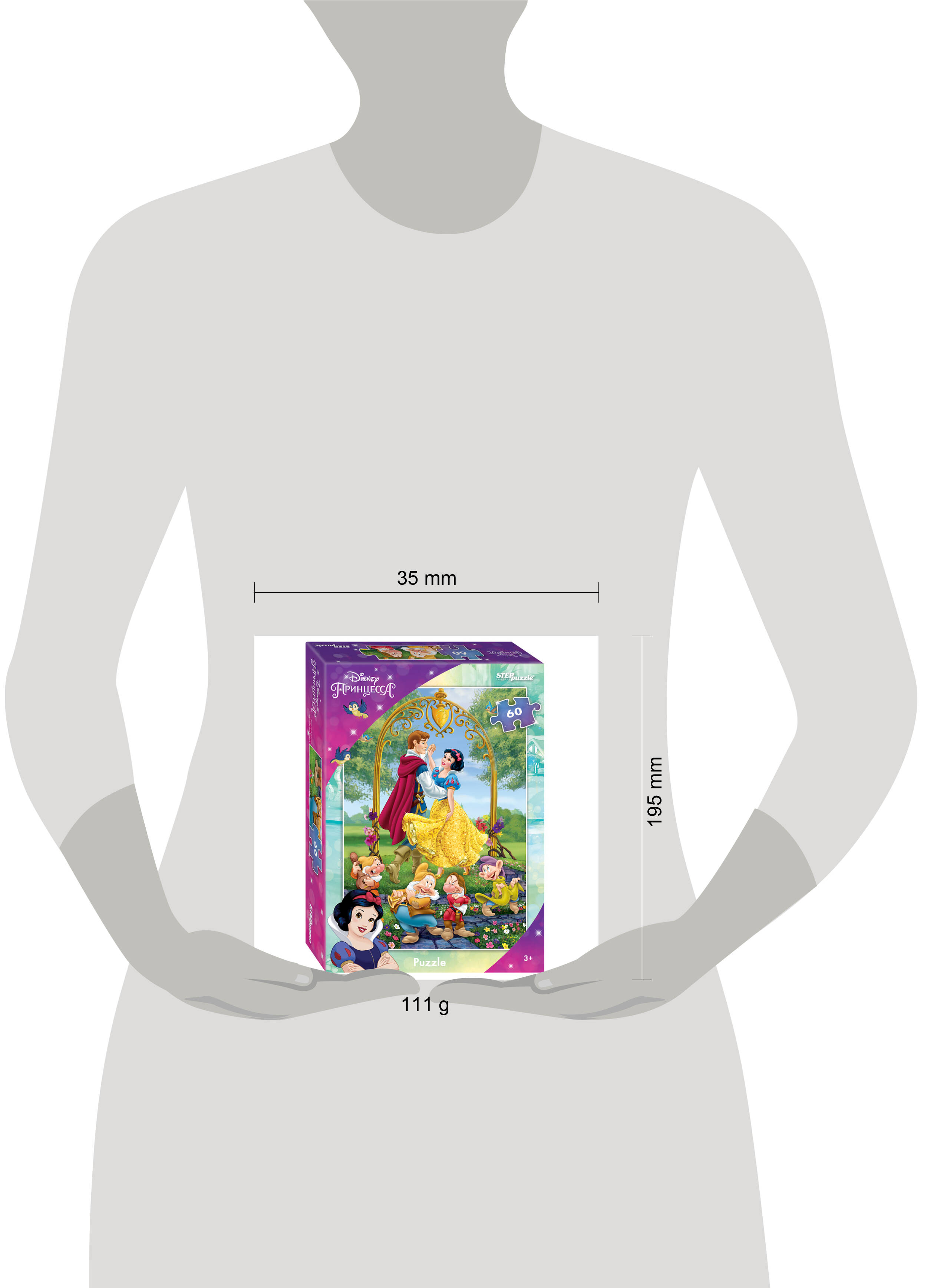 Пазл "Белоснежка" создан по мотивам одноименного мультфильма. Яркая картинка перенесет маленьких пазломанов в мир Disney, где все, даже самые запутанные истории заканчиваются положительно. На картинке главная героиня вместе с принцем пустились в пляс. Не удержаться не смогли и гномы - Скромник, Простак, Ворчун и Весельчак. Характеристики пазла: - яркое, контрастное изображение; - материал пазла - картон; - детали пазла 3,5 × 3,5 см; - экологически чистые, нетоксичные материалы (компания Step Puzzle гарантирует высокое качество пазла и точность подгонки); Размер собранного изображения - 33×23 см. Для кого? Пазлы из 60 элементов прекрасно подойдут для детей от 3-х лет. Подарите детям чудесный пазл "Белоснежка" - они будут счастливы!| Издательство | Степ Пазл ЗАО |