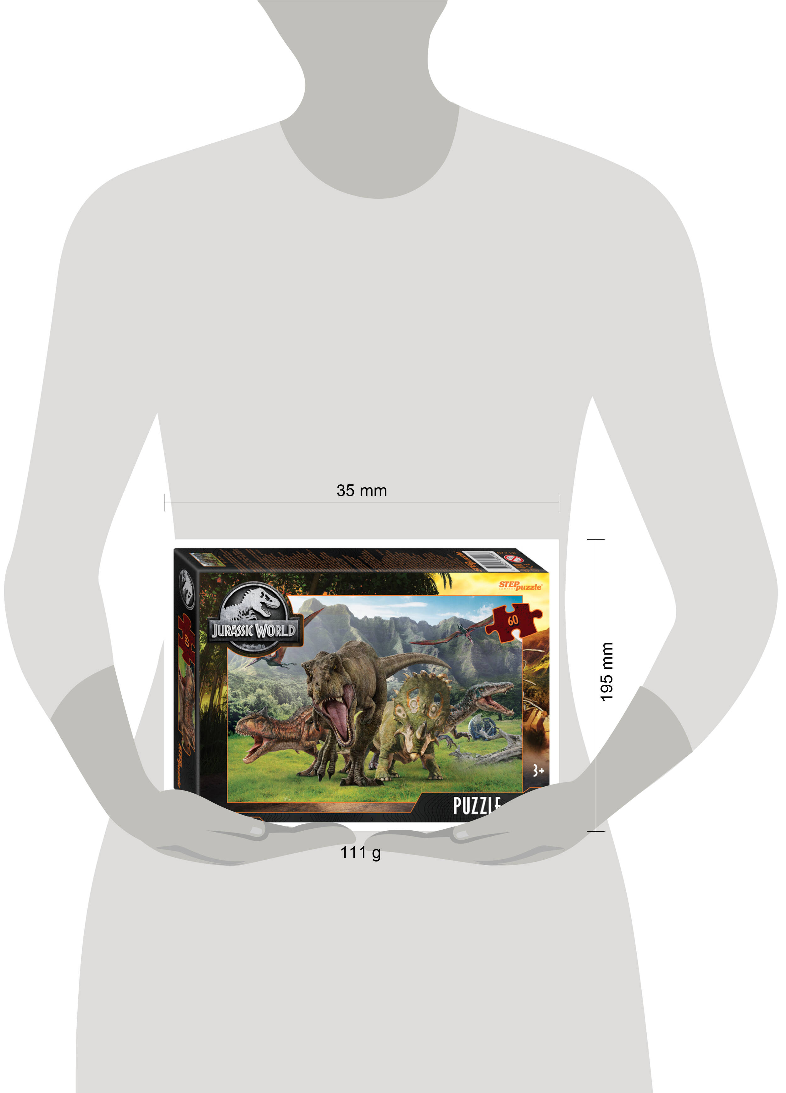 Пазл "Парк юрского периода" по мотивам научно-фантастического фильма Стивена Спилберга "Парк юрского периода". Характеристики пазла: яркое, контрастное изображение, точность подгонки деталей; материал пазла - картон; детали пазла 3,5 × 3,5 см; экологически чистые, нетоксичные материалы (компания Step Puzzle гарантирует высокое качество пазла и точность подгонки); размер собранного изображения 33 × 23 см. Для кого? Для детей от 3-х лет. С этим пазлом покупают специальный клей для пазлов, чтобы скрепить детали мозаики между собой и получить цельную картинку.