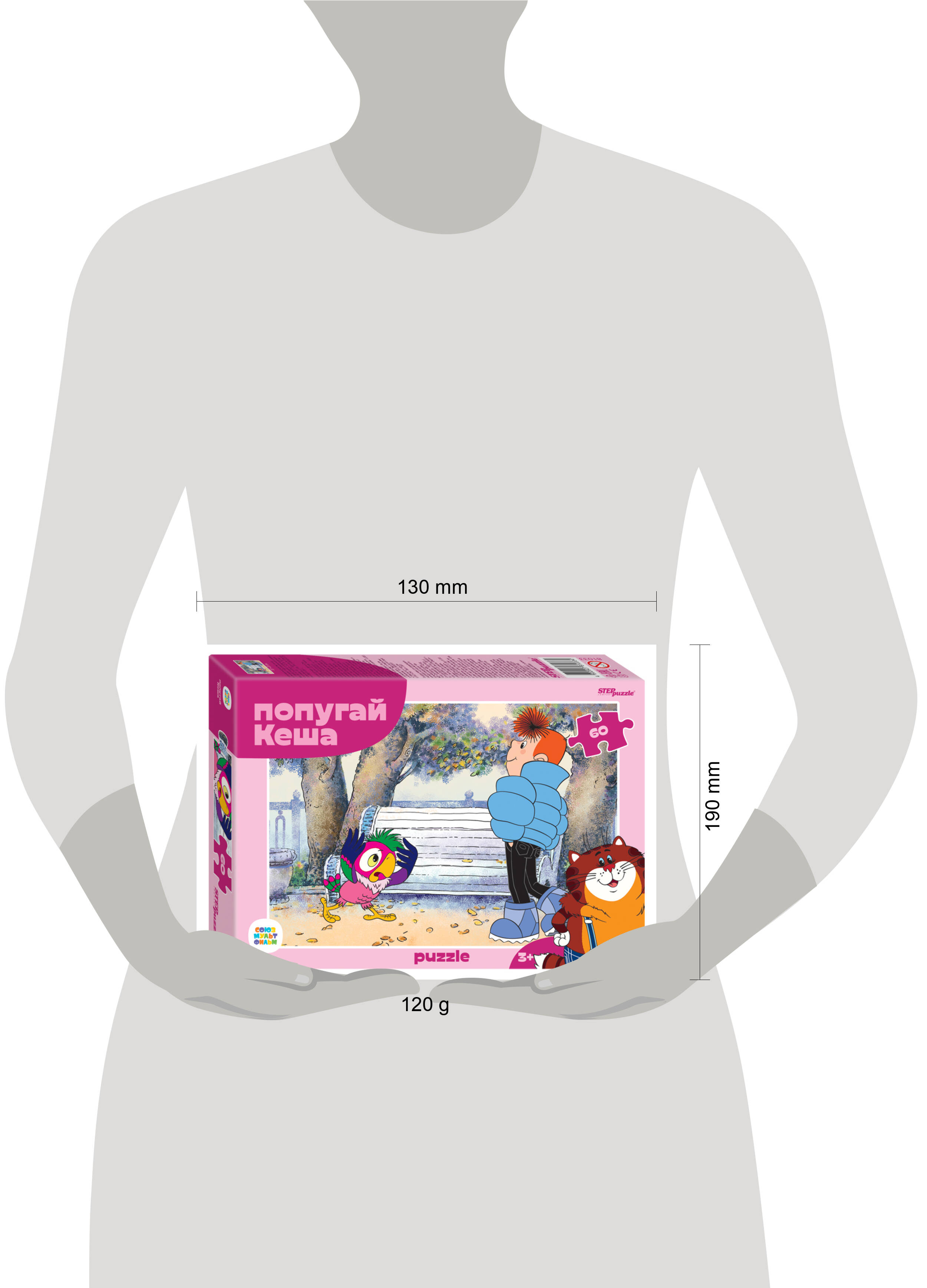 Пазл "Попугай Кеша" состоит из 60 деталей. Его картинка повторяет сцену из мультфильма: ту, где Кеша знакомится с новым хозяином и просит забрать его к себе. Характеристики пазла: - стандартные детали пазла (3,5 × 3,5 см); - размер собранного изображения - 23 × 33 см; - качественное яркое изображение; - материал - картон; - экологически чистые, нетоксичные материалы (компания Step Puzzle гарантирует высокое качество пазла и точность подгонки). Пазл подходит для детей от 3 лет. Пазл "Попугай Кеша" точно понравится всем тем, кто знаком с мультфильмом про блудного попугая.| Издательство | Степ Пазл ЗАО |
