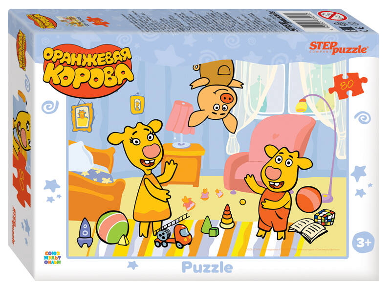 Пазл "Оранжевая корова" состоит из 80 элементов. На всех картинках главные герои мультфильма - телята Зо и Бо. Рядом с ними их верные друзья и мама Корова. В новой серии пазлов телята учатся рисовать, собирают в лесу грибы и ягоды, читают интересные книги, и, конечно же не забывают о своих игрушках. Яркие картинки захочется собрать не только самым маленьким членам семьи, но и взрослым. Характеристики пазла: - стандартные детали пазла (2×1,8 см); - размер собранного изображения - 23*16,5 см; - материал - картон; - качественное изображение; - экологически чистые, нетоксичные материалы (компания Step Puzzle гарантирует высокое качество пазла и точность подгонки). Для кого? Пазл подходит для взрослых и детей от 3 лет. Пазл "Оранжевая корова" станет прекрасным подарком для любителей приключений. Рекомендуем приобрести специальный клей для пазлов, чтобы скрепить детали мозаики между собой и получить цельную картину. Также с этим пазлом покупают специальный коврик для комфортной сборки пазла.| Издательство | Степ Пазл ЗАО |