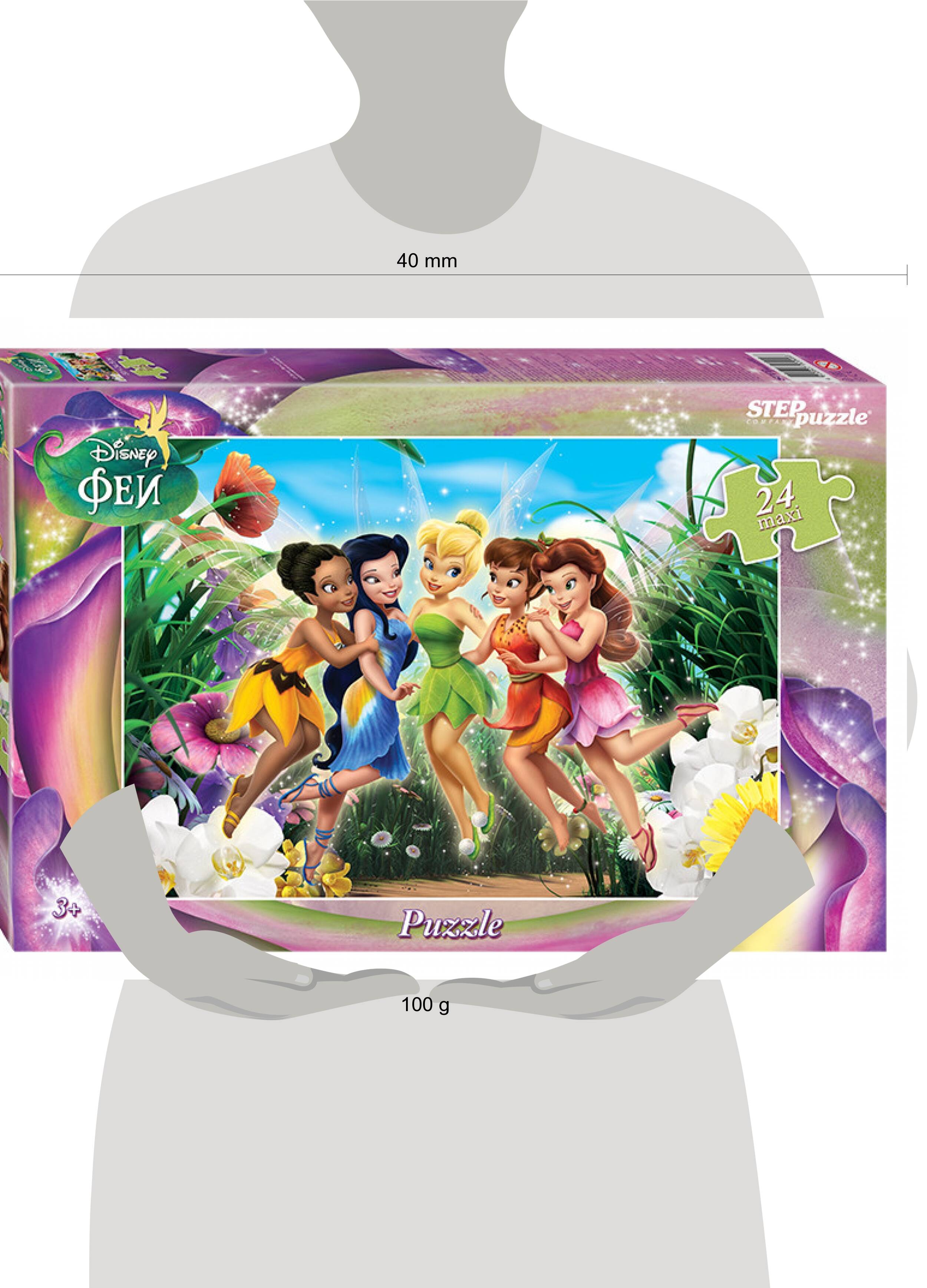 Пазл "Феи" выпущен по мотивам многими любимого мультфильма корпорации Disney. На картинке мы видим пятерых очаровательных феечек - они улыбаются и что-то обсуждают. Готовится волшебство? Пазл состоит из 24 крупных деталей, размер одного элемента сопоставим с ладонью взрослого человека. Ребенку будет легко с ними играть и составлять картинку, также большие детали будет сложно потерять. Характеристики пазла: - крупные детали пазла (8×8,5 см); - размер собранного изображения - 50*34,5 см; - материал - картон; - качественное изображение; - экологически чистые, нетоксичные материалы (компания Step Puzzle гарантирует высокое качество пазла и точность подгонки). Для кого? Пазл подходит для детей от 3 лет. Яркий пазл "Феи" наверняка понравится юным феечкам и принцессам, он станет отличным подарком к любому празднику. Рекомендуем приобрести специальный клей для пазлов, чтобы скрепить детали мозаики между собой и получить цельную картину.| Издательство | Степ Пазл ЗАО |
