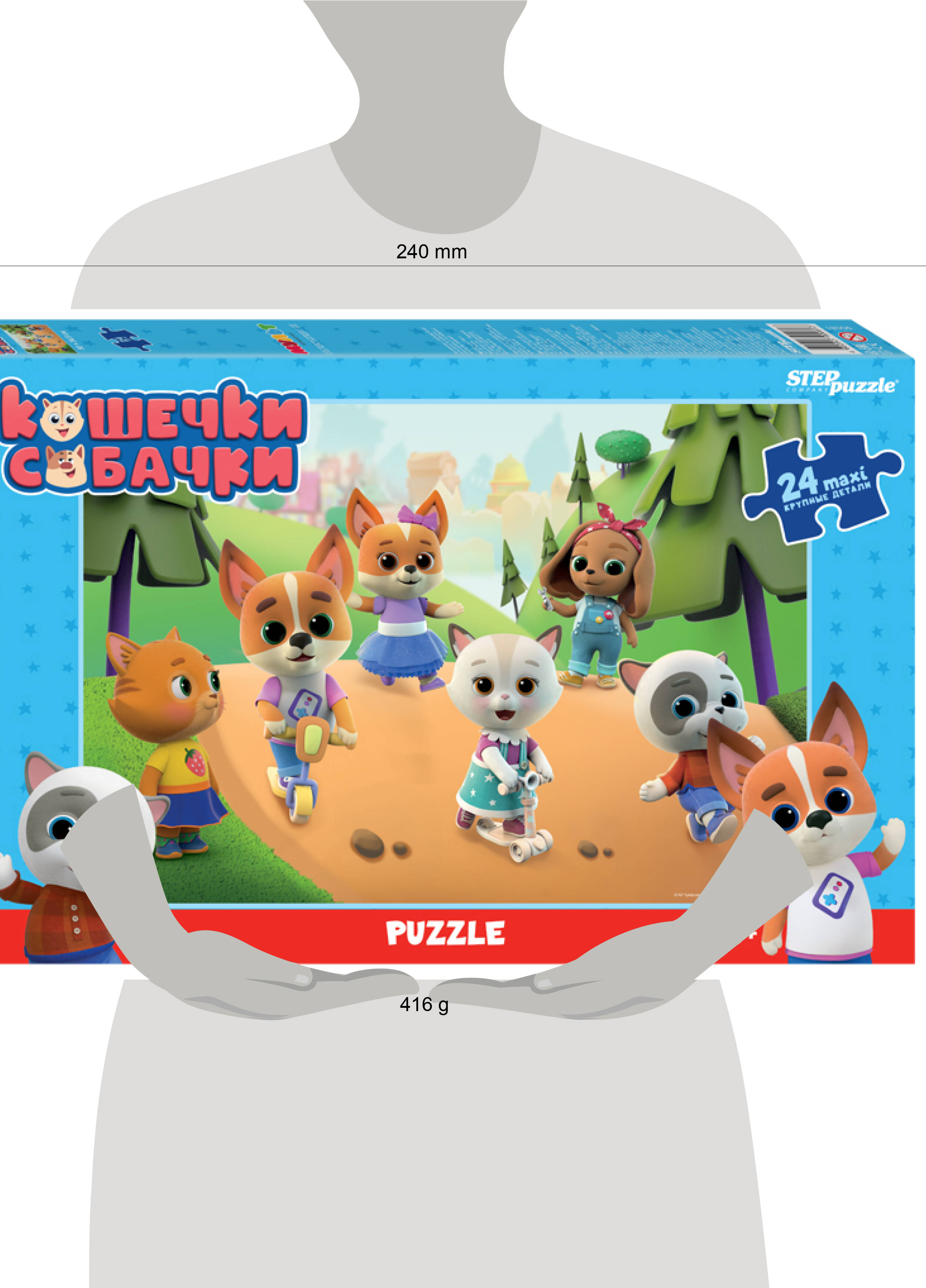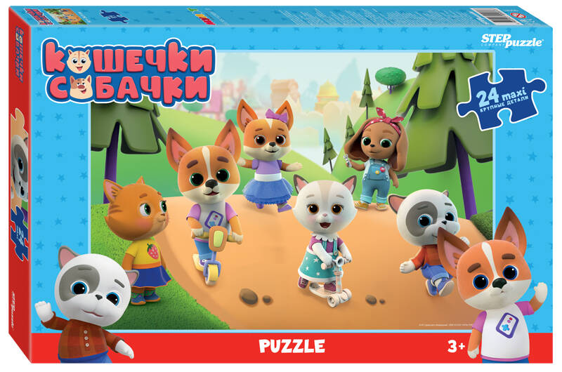 Пазл "Кошечки и собачки" основан на сюжетах одноименного мультфильма. Здесь мы видим шестерых главных героев. Пазл состоит из 24 крупных деталей, размер одного элемента сопоставим с ладонью взрослого человека. Ребенку будет легко с ними играть и составлять картинку, также большие детали будет сложно потерять. Характеристики пазла: - крупные детали пазла (8×8,5 см); - размер собранного изображения - 50*34,5 см; - материал - картон; - качественное изображение; - экологически чистые, нетоксичные материалы (компания Step Puzzle гарантирует высокое качество пазла и точность подгонки). Для кого? Пазл подходит для детей от 3 лет. Яркий пазл "Кошечки и собачки" с любимыми героями на картинке наверняка понравится всем фанатам этого мультфильма! Рекомендуем приобрести специальный клей для пазлов, чтобы скрепить детали мозаики между собой и получить цельную картину.| Издательство | Степ Пазл ЗАО |
