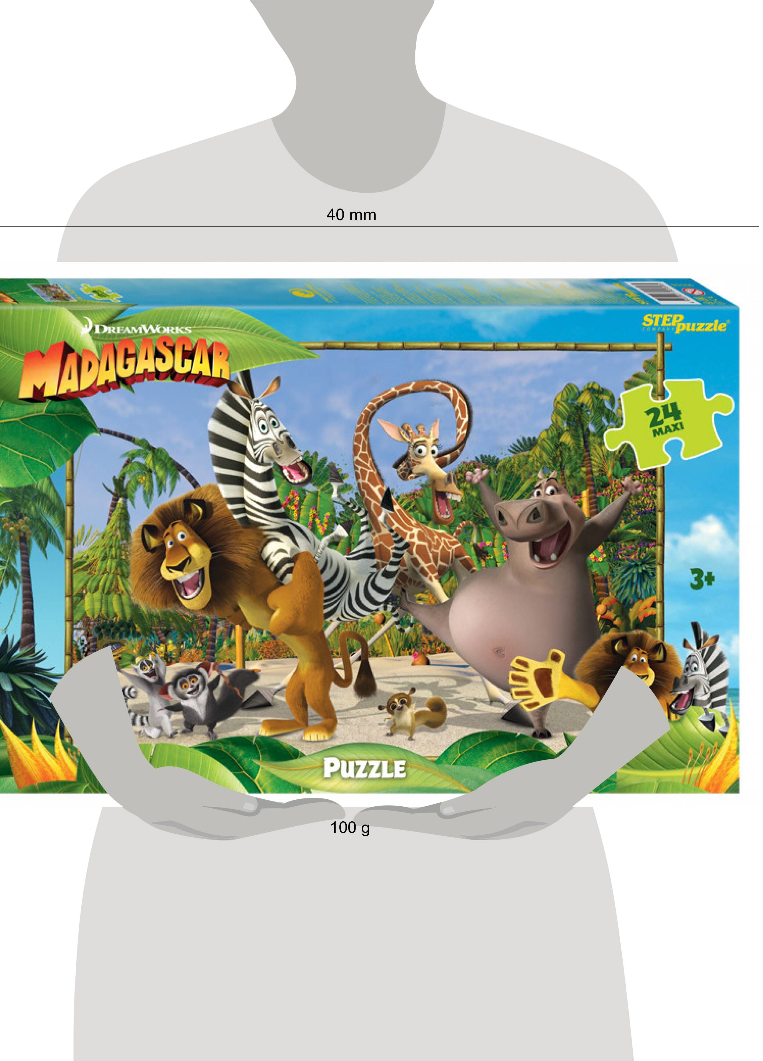 Пазл "Мадагаскар - 3" основан на историях из одноименного мультфильма. На картинке мы видим главных героев фильма - льва Алекса, бегемотиху Глорию, зебру Марти и жирафа Мелмана. Они веселятся вместе со своими друзьями - лемурами королём Джулианом, Морисом и Мортом. Пазл состоит из 24 крупных деталей, размер одного элемента сопоставим с ладонью взрослого человека. Ребенку будет легко с ними играть и составлять картинку, также большие детали будет сложно потерять. Характеристики пазла: - крупные детали пазла (8×8,5 см); - размер собранного изображения - 50*34,5 см; - материал - картон; - качественное изображение; - экологически чистые, нетоксичные материалы (компания Step Puzzle гарантирует высокое качество пазла и точность подгонки). Для кого? Пазл подходит для детей от 3 лет. Яркий пазл "Мадагаскар - 3" порадует всех любителей фильмов про приключения нью-йоркских животных в Африке. Рекомендуем приобрести специальный клей для пазлов, чтобы скрепить детали мозаики между собой и получить цельную картину.| Издательство | Степ Пазл ЗАО |