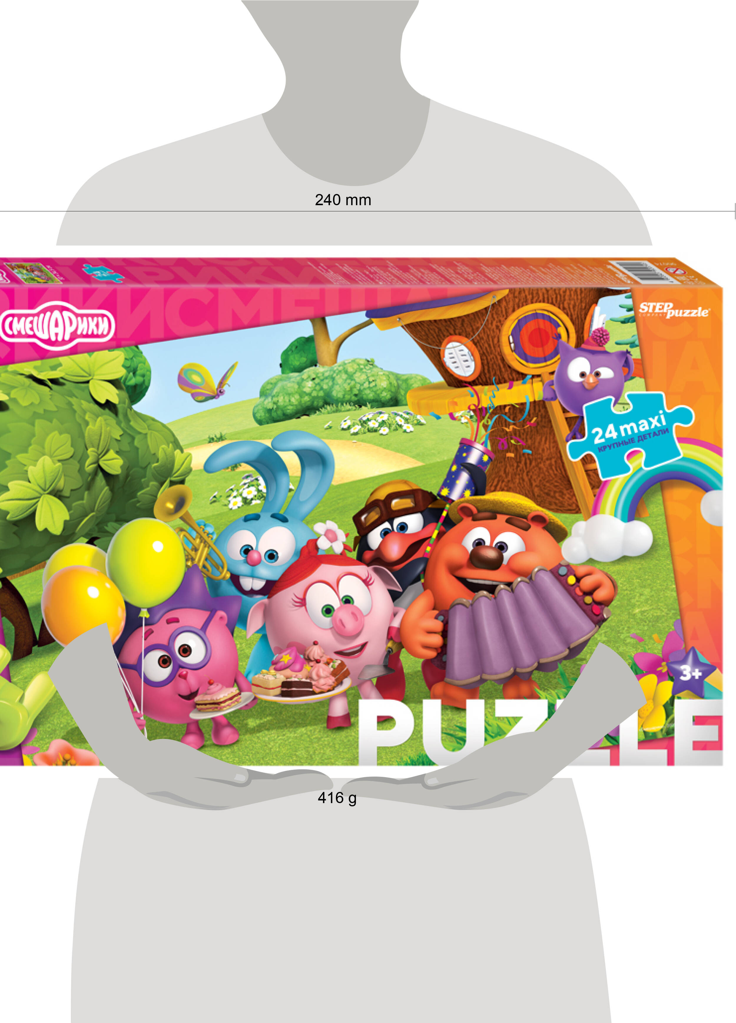 Пазл "Смешарики" основан на сюжетах одноименного мультфильма от компании "Мармелад Медиа". На его картинке мы видим всех шестерых главных героев. Пазл состоит из 24 крупных деталей, размер одного элемента сопоставим с ладонью взрослого человека. Ребенку будет легко с ними играть и составлять картинку, также большие детали будет сложно потерять. Характеристики пазла: - крупные детали пазла (8×8,5 см); - размер собранного изображения - 50*34,5 см; - материал - картон; - качественное изображение; - экологически чистые, нетоксичные материалы (компания Step Puzzle гарантирует высокое качество пазла и точность подгонки). Для кого? Пазл подходит для детей от 3 лет. Порадуйте своего ребёнка ярким пазлом "Смешарики" с любимыми героинями на картинке! Рекомендуем приобрести специальный клей для пазлов, чтобы скрепить детали мозаики между собой и получить цельную картину.