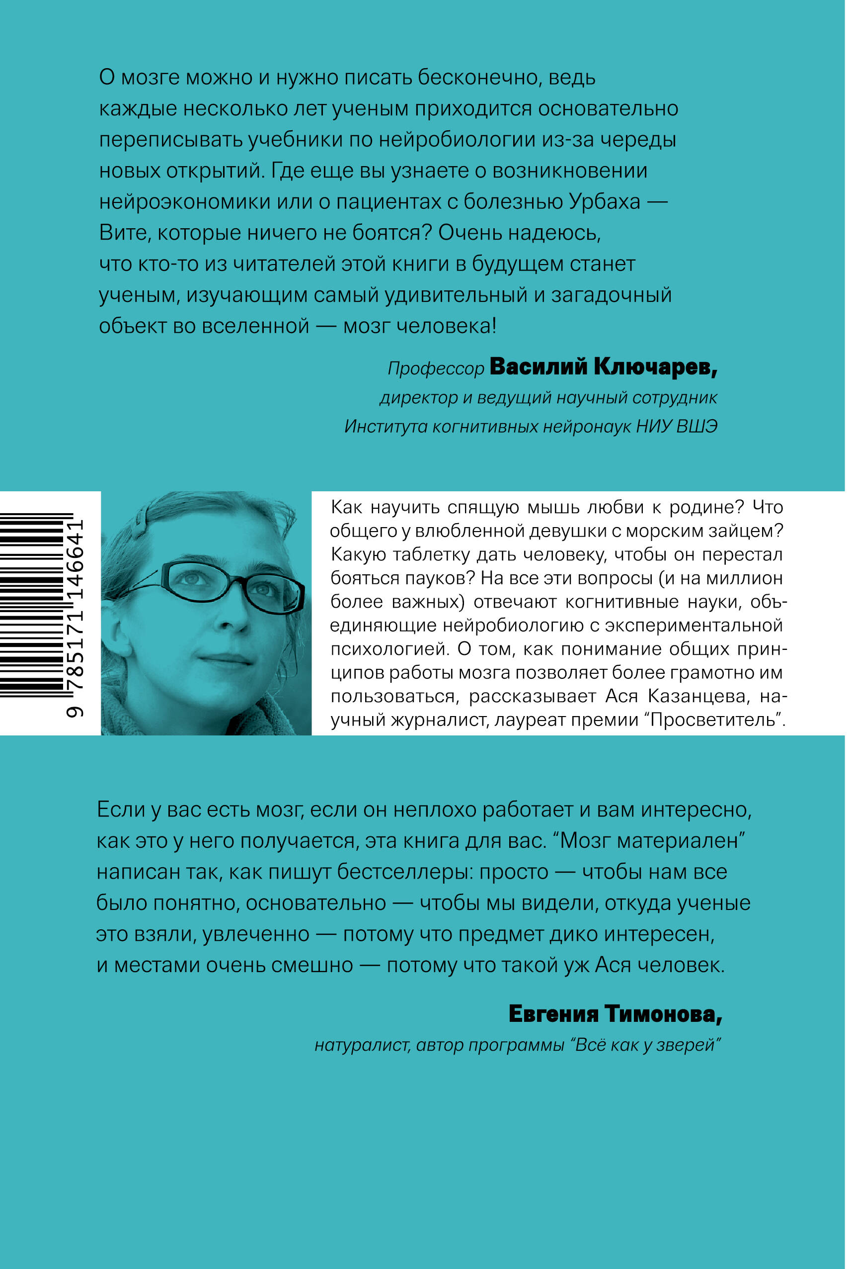 Невероятный и захватывающий путеводитель по одному из самых загадочных и малоизученных органов нашего тела Современная нейробиология началась со взрыва при прокладке железнодорожных путей 13 сентября 1848 года, в штате Вермонт. В результате несчастного случая металлический стержень пробил голову двадцатипятилетнего бригадира Финеаса Гейджа насквозь, войдя в череп под левым глазом и выйдя через макушку. Финеас не только выжил, но и добрался на повозке до совершенно пораженного этим случаем доктора. Поле этого случая он долгое время путешествовал, работал кучером почтового дилижанса в Чили, правда, характер его изменился настолько, что его друзья и знакомые в один голос заявляли: "Это больше не Гейдж". Этот случай наглядно демонстрирует, насколько важен вклад нашего мозга в формирование нашей личности. На протяжении последующих 170 лет ученые не только всесторонне изучали его, но и пытались при помощи самых разных опытов изменить характер, пищевые и сексуальные пристрастия человека. Нельзя сказать, что безрезультатно. Эта книга известного научного журналиста, популяризатора науки, лауреата премии «Просветитель» Аси Казанцевой рассказывает об удивительных исследованиях, необычных опытах и поразительных открытиях, которые доказали, что наш мозг - так же материален, как и все другие органы нашего тела. Его можно исследовать, с ним можно проводить разного рода манипуляции. Вот только приводит это все порой к совершенно неожиданным последствиям.| Издательство | ИЗДАТЕЛЬСТВО "АСТ" |