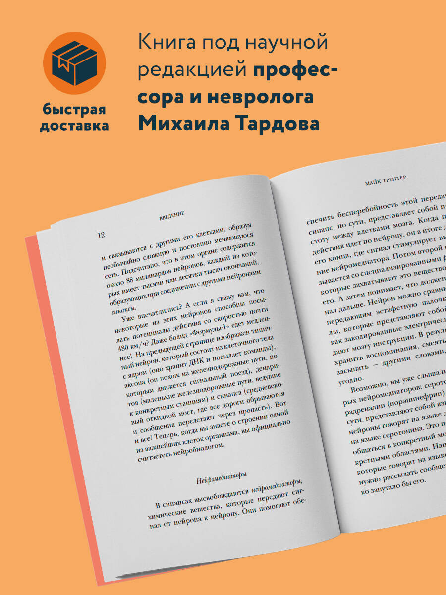 КАК МЕНЯЛСЯ МОЗГ ЧЕЛОВЕКА В ХОДЕ ЭВОЛЮЦИИ? ПОЧЕМУ МЫ ВИДИМ СНЫ И ЧТО ТАКОЕ ОСОЗНАННЫЕ СНОВИДЕНИЯ? ГДЕ ХРАНЯТСЯ ВОСПОМИНАНИЯ? КАК ДЕПРЕССИЯ И ЗАВИСИМОСТЬ ВЛИЯЮТ НА МОЗГ? ПОЧЕМУ СТРЕСС - ОДИН ИЗ ЗЛЕЙШИХ ВРАГОВ МОЗГА? ЧТО ПРОИСХОДИТ С МОЗГОМ ВО ВРЕМЯ МЕДИТАЦИИ? В данной книге речь идет о различных феноменах мозга. Майк Трентер рассказывает о когнитивных искажениях, неспособности узнавать лица, случае Финеаса Гейджа, слепозрении и идеальной памяти. Автор дает читателям возможность заглянуть внутрь мозга и понять, что происходит, когда он работает не так, как надо. КНИГА ПОД НАУЧНОЙ РЕДАКЦИЕЙ МИХАИЛА ТАРДОВА, Д.М.Н., НЕВРОЛОГА, ПРОФЕССОРА КАФЕДРЫ ОБЩЕЙ ВРАЧЕБНОЙ ПРАКТИКИ МЕДИЦИНСКОГО ИНСТИТУТА РУДН. «Доктор Трентер объясняет все таким языком, который будет понятен даже людям, которые вообще ничего не знают о науке (мне, например). Кроме того, некоторые его комментарии так меня рассмешили, что мне захотелось отвлечь мужа от чтения его книги, чтобы поделиться с ним. Доктор Трентер включил в книгу не только ответы на вопросы, но и главы о "секретных материалах" нейробиологии, которые понравились мне еще больше, чем часть с вопросами и ответами. Главы относительно короткие, поэтому вы можете выбирать, что почитать. Нет необходимости читать книгу от корки до корки, и мне это понравилось». - ЧИТАТЕЛЬ С AMAZON| Издательство | ООО "Издательство "Эксмо" |