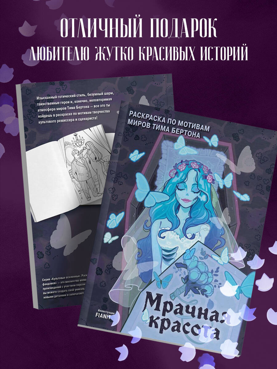 Аннотация: Мрачная красота. Раскраска по мотивам миров Тима Бертона