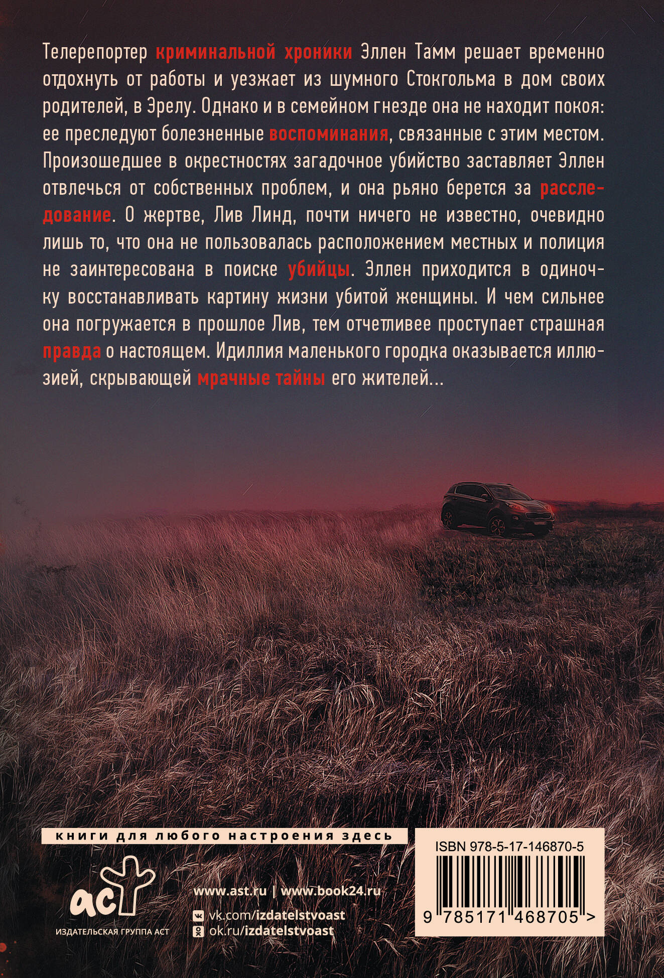• «Микаэла Блей - новая королева скандинавского триллера», - Vanity Fair • Роман-саспенс «Мрачные тайны» - вторая книга о телерепортере Эллен Тамм • Мрачная и реалистичная детективная история, держащая в напряжении • Пугающий триллер для поклонников Самюэля Бьорка, Ю Несбё и Стига Ларссона • Преступником может оказаться каждый - даже самый близкий человек Эллен Тамм - телерепортер криминальной хроники. Надеясь отдохнуть от работы, она отправляется в отпуск к в дом к своим родителям. В окрестностях города происходит зверское убийство молодой женщины. О жертве, Лив Линд, почти ничего не известно, а полиция, кажется, не заинтересована в поиске убийцы. Журналистское любопытство берет верх - Эллен начинает свое собственное расследование. Но чем глубже она погружается в жизнь убитой молодой девушки, тем больше секретов о своей жизни ей придется раскрыть. Вскоре Эллен понимает, что идиллия маленького городка таит в себе темные тайны и что многое является не тем, чем кажется.| Издательство | АСТ |