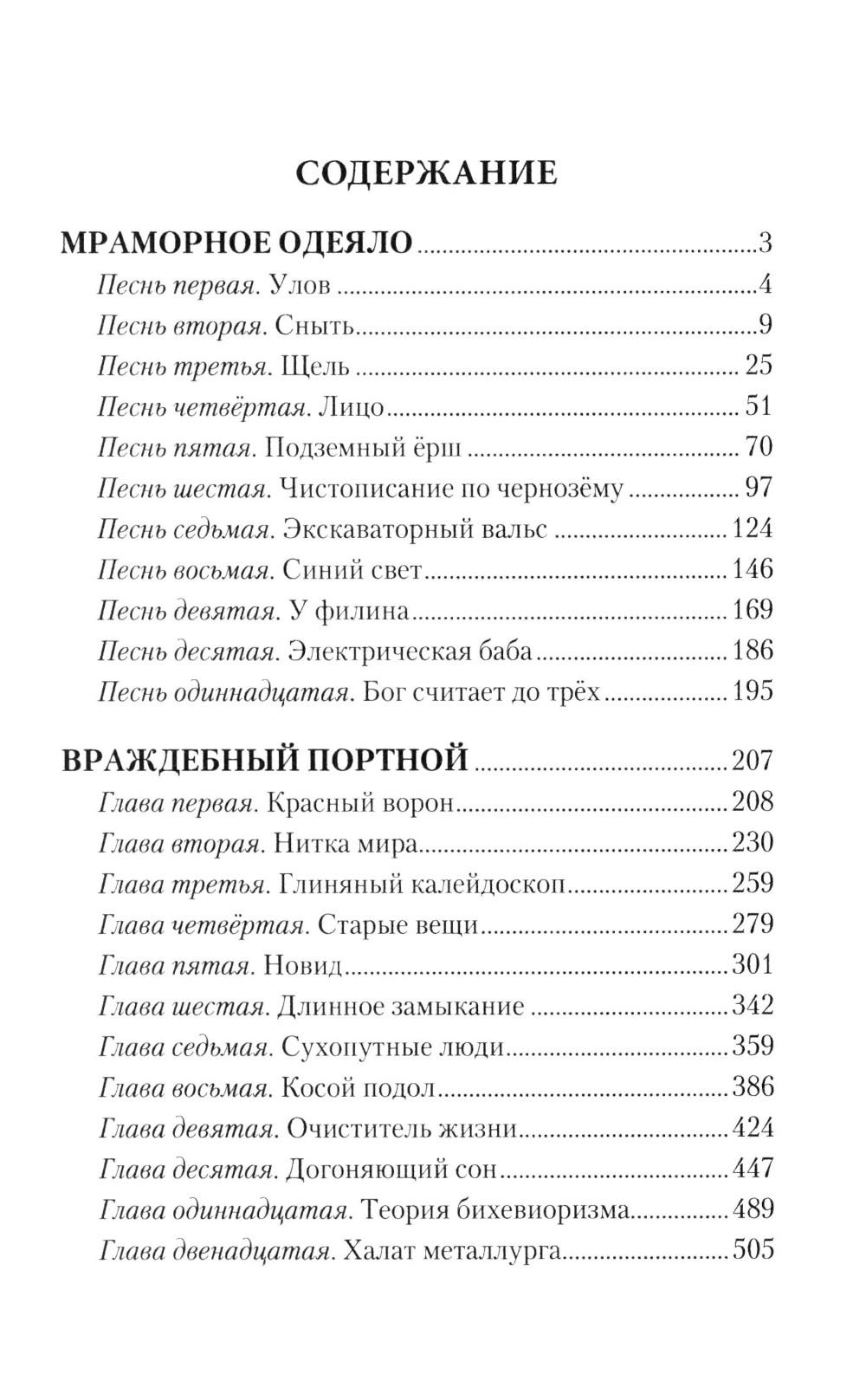 В сборник избранных произведений известного писателя, главного редактора старейшего российского литературного журнала «Романгазета» Юрия Козлова включены романы «Враждебный портной» и «Мраморное одеяло». «Враждебный портной» - история жизни и борьбы за существование мелкого предпринимателя, ставшего крупным государственным чиновником. Его задача - одеть страну в одежду отечественного производства, но само устройство «русского капитализма» делает эту миссию невыполнимой, постепенно превращая циничного приспособленца в пламенного патриота. Роман был объявлен «Книгой года» по версии Российской государственной библиотеки. «Мраморное одеяло» - повесть, названная автором «поэмой», - заставляет вспомнить две другие «поэмы» - «Мёртвые души» Гоголя и «Москва - Петушки» Венедикта Ерофеева. Жизнь вымышленного города Безуслова, где волею судьбы оказывается главный герой, - это жизнь современной России в причудливых хитросплетениях прошлого, настоящего и будущего. Вокруг музея, где работает герой, разворачиваются удивительные события, связанные с извлечением изпод монумента комсомольцам тридцатых годов на центральной площади города «Письма потомкам», которое помимо официально утверждённого текста содержит написанное невидимыми (симпатическими) чернилами тайное послание. О творчестве Юрия Козлова написано немало литературоведческих статей, изданы монографии, его книги переведены на иностранные языки. Это талантливый и самобытный автор, настоящий мастер интеллектуальной прозы, заставляющей читателя не только думать, но и смеяться, и мечтать.| Издательство | Вече |