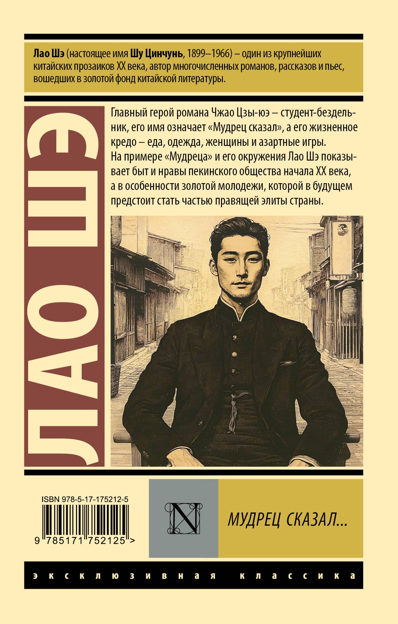 Главный герой романа Чжао Цзы-юэ - студент-бездельник, его имя означает "Мудрец сказал", а его жизненное кредо - еда, одежда, женщины и азартные игры. На примере "Мудреца" и его окружения Лао Шэ показывает быт и нравы пекинского общества начала XX века, а в особенности золотой молодежи, которой в будущем предстоит стать частью правящей элиты страны.| Издательство | Издательство "АСТ" |