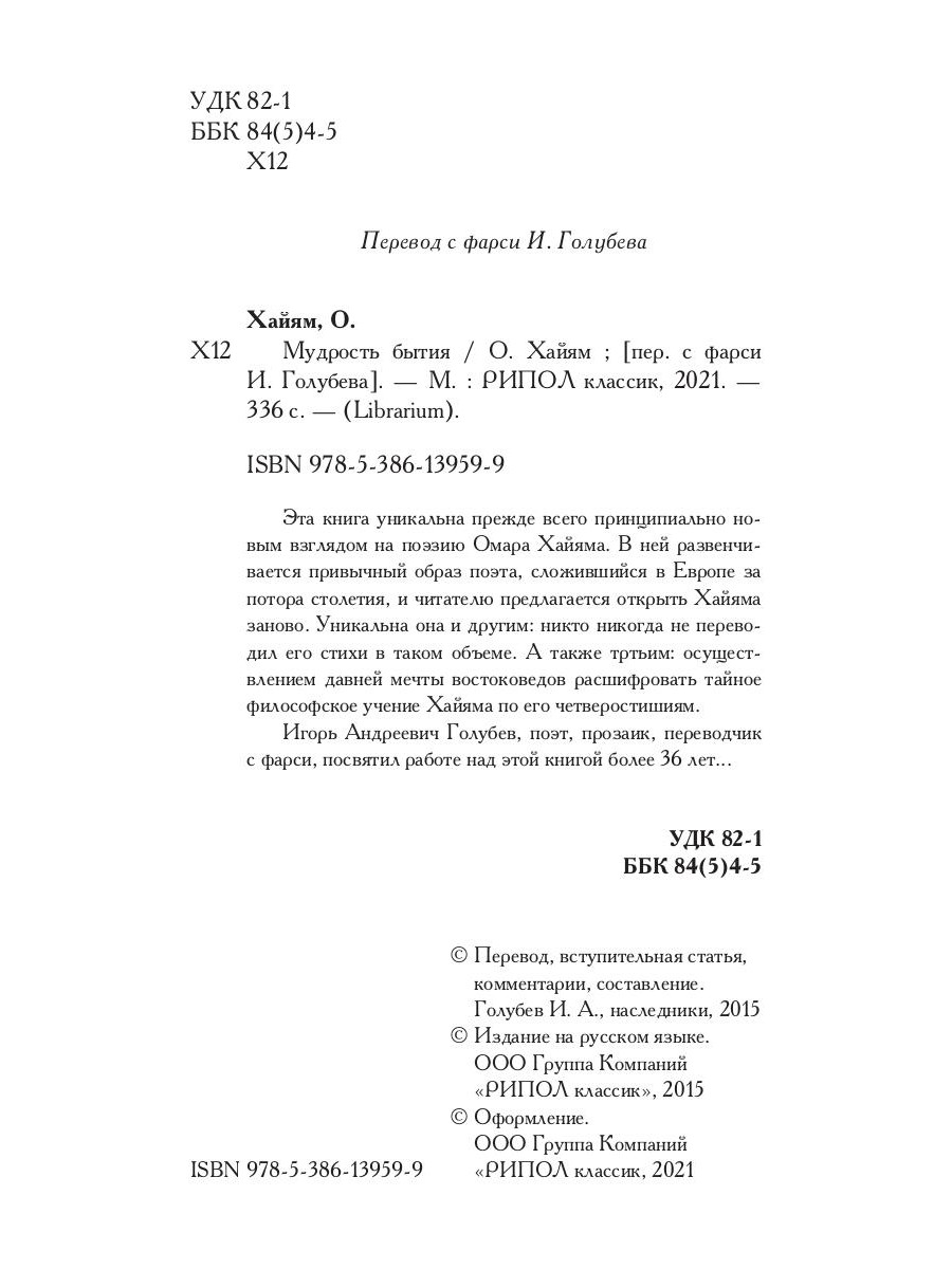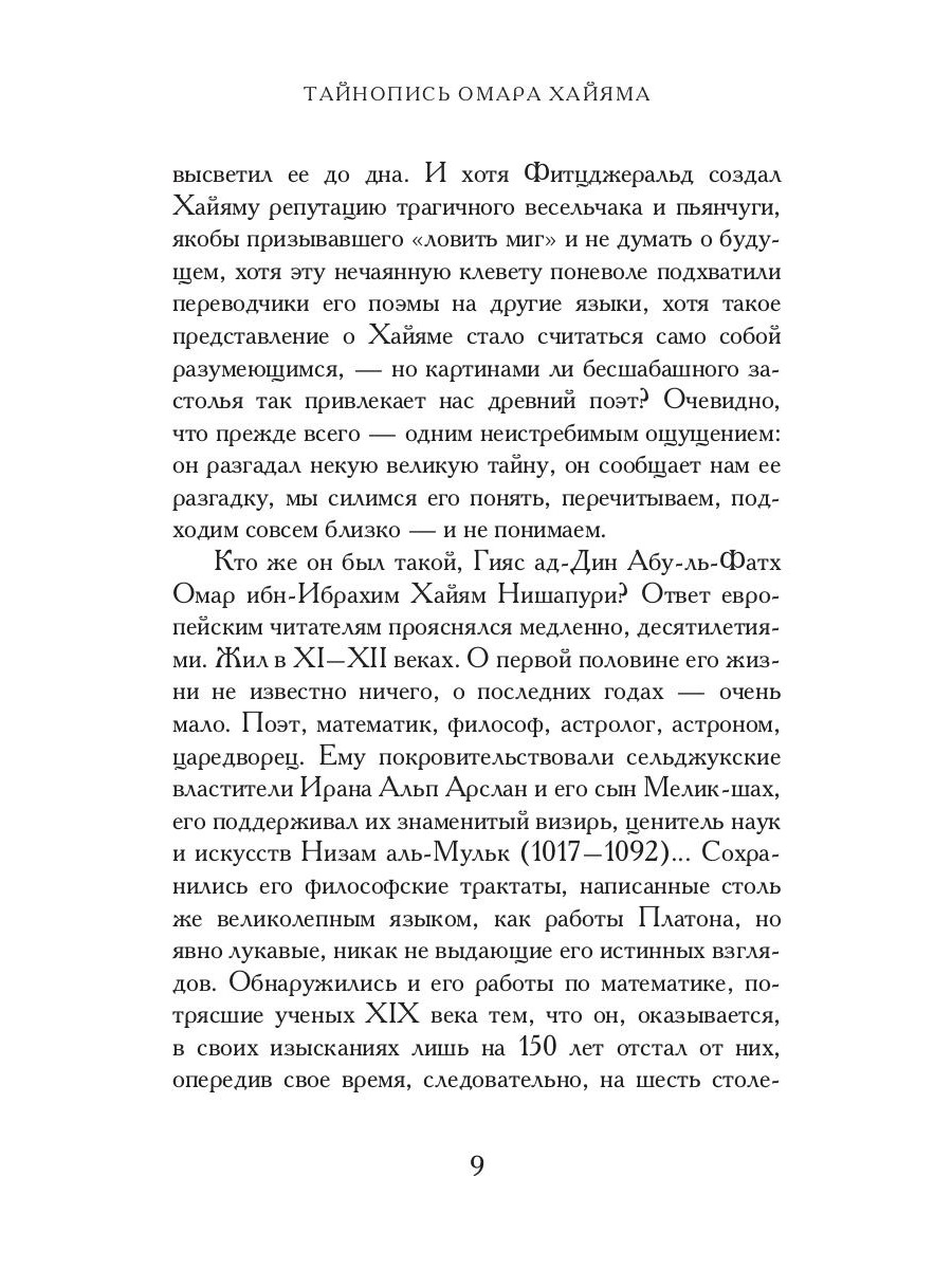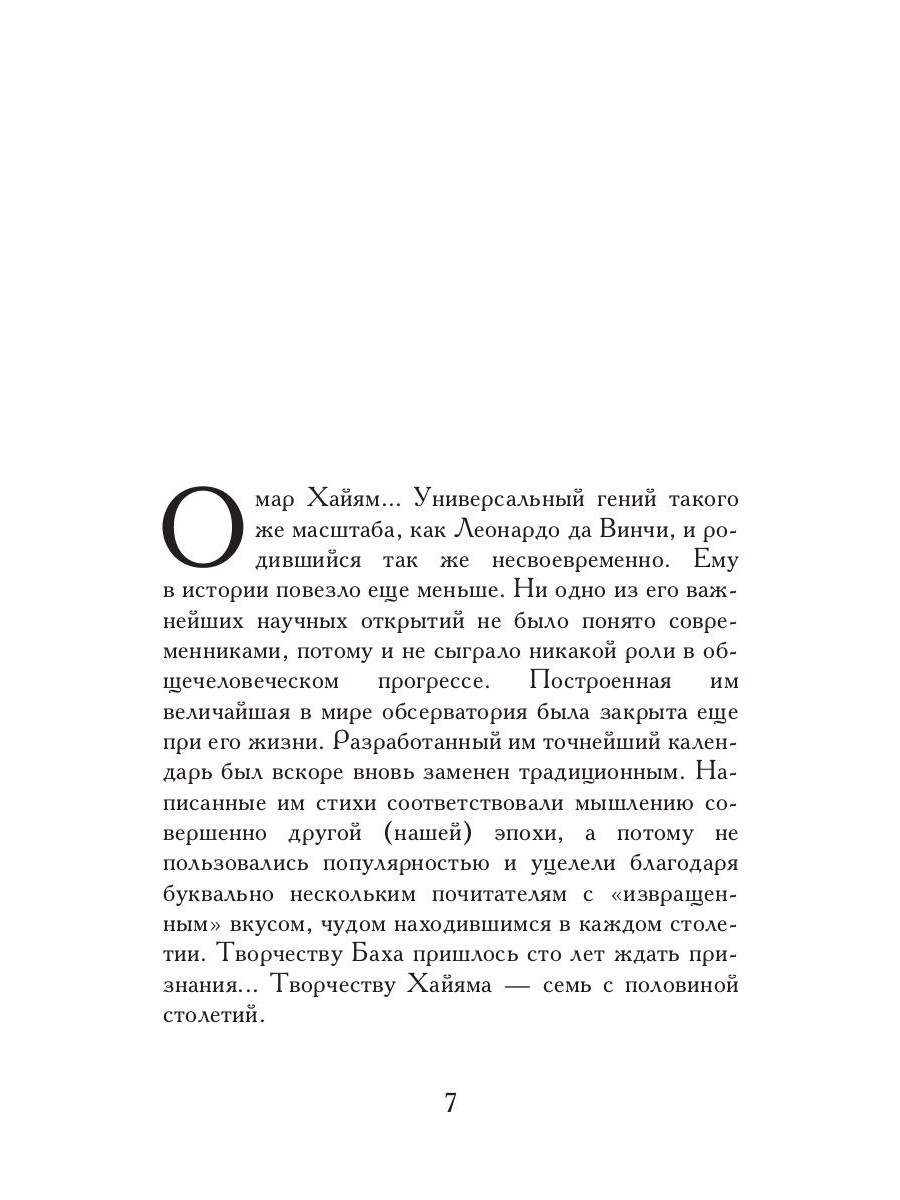 Эта книга уникальна прежде всего принципиально новым взглядом на поэзию Омара Хайяма. В ней развенчивается привычный образ поэта, сложившийся в Европе за полтора столетия, и читателю предлагается открыть Хайяма заново. Уникальна она и другим: никто никогда не переводил его стихи в таком объеме. А также третьим: осуществлением давней мечты востоковедов расшифровать тайное философское учение Хайяма по его четверостишиям.