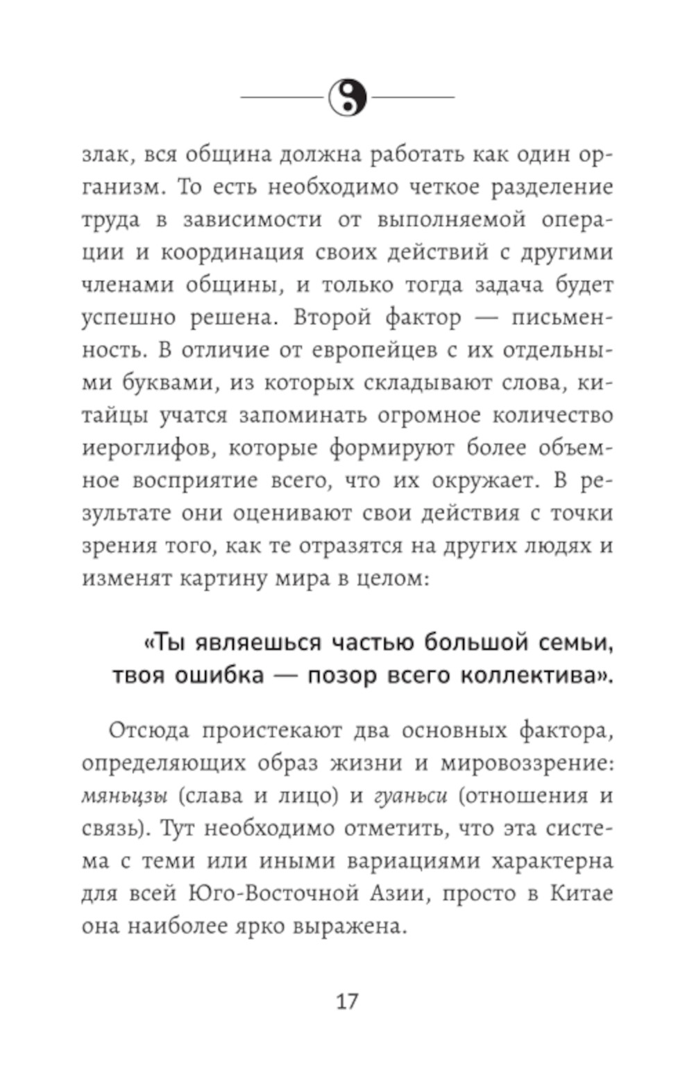 Второй в мире по объему экономики, третий на Земле по занимаемой площади, древнейшая цивилизация, родина многих изобретений, повлиявших на развитие человечества. Да, это Китай - загадочный и непостижимый, открытый всему новому и закрытый от всего чуждого. Таинственный Восток издревле притягивал европейцев своей инакостью, непонятным укладом жизни. Многие исследователи пытались познать и постичь его сущность, но удавалось это единицам, да и то не в полной мере. Европейцы уверены: в Китае все устроено сложно и непонятно, зависит от множества условностей. На взгляд китайцев, все просто и логично, подчиняется древним и общепринятым правилам. Издание позволит ознакомиться с основами китайской мудрости, узнать, почему китайцы планируют минимум на поколение вперед, благодаря чему выигрывают в сложных ситуациях и в чем видят смысл бытия. Эти правила помогут вам лучше понять представителей Поднебесной и выстроить с ними добрые отношения. А возможно, вы возьмете на вооружение некоторые из их принципов и станете ближе к достижению гармонии в своей жизни.| Издательство | Феникс |