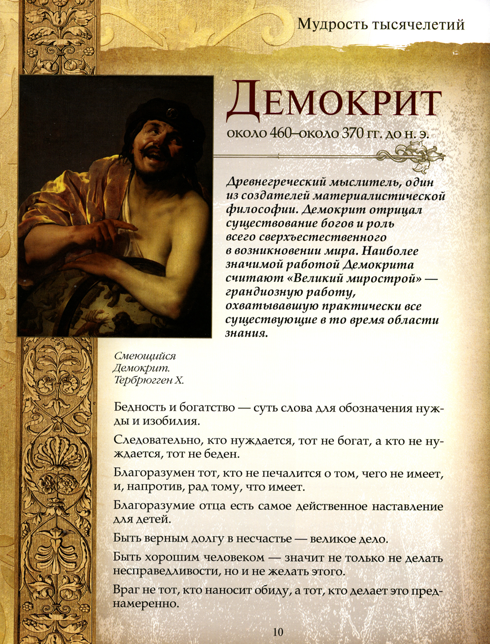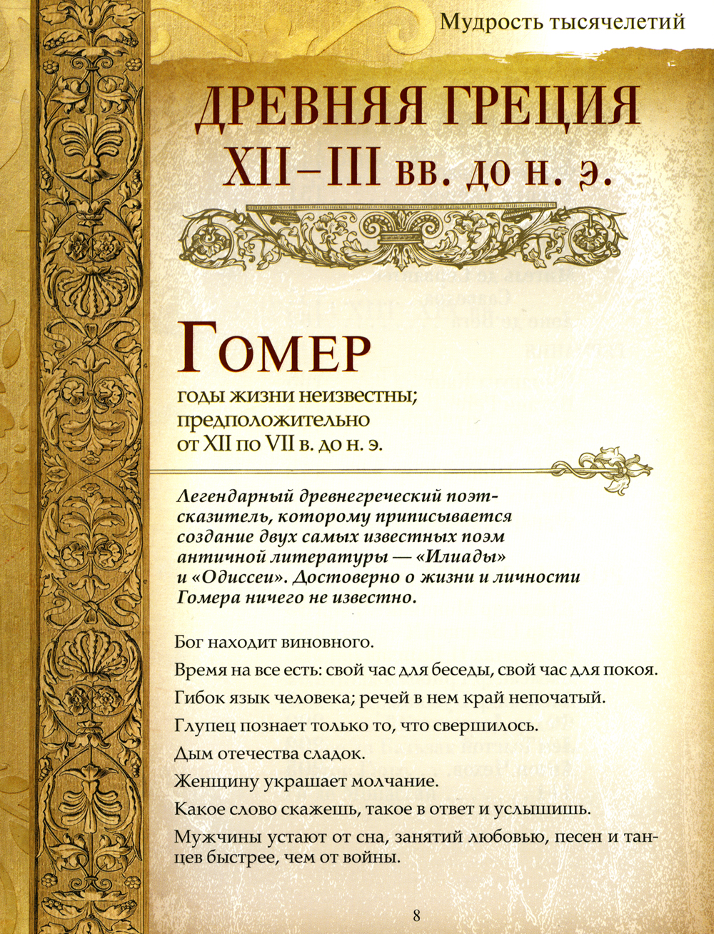 В книгу «Мудрость тысячелетий» вошли лучшие изречения, афоризмы, высказывания, цитаты, принадлежащие выдающимся мыслителям, философам, писателям, поэтам, государственным и религиозным деятелям прошлого. О каждом авторе приводится краткая справочная информация, дающая представление о его роли в развитии мировой общественной мысли. В сборнике собраны жемчужины мудрости огромного периода человеческой истории: от XII века до нашей эры и до XIX века нашей эры. Материал распределен по эпохам и странам. В афоризмах отражаются представления о главных культурных и нравственных ценностях человеческой культуры и цивилизации. Книга адресована всем, кто интересуется историей философии, науки, литературы. Читателей ждет увлекательное и поучительное путешествие сквозь века вместе с самыми выдающимися людьми всех времен и народов.| Издательство | Просвещение-Союз |