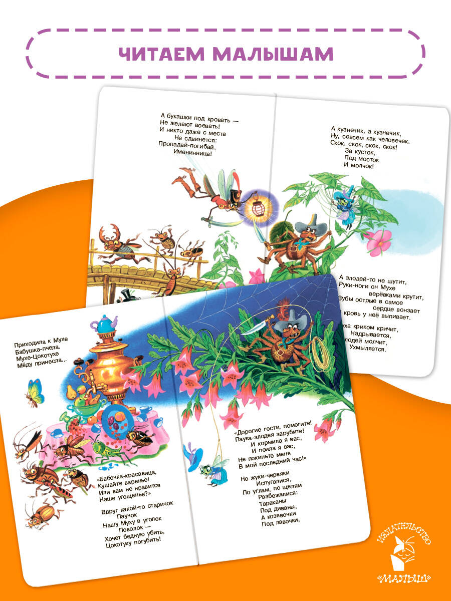 Красавица Муха купила красивый самовар и позвала всех своих друзей-насекомых на чаепитие. Но кроме доброй бабушки-пчелы, весёлых тараканов и маленьких букашек в гости пришёл… злодей Паук! Чтобы узнать, чем закончилась эта история, читайте известную сказку Корнея Чуковского!| Издательство | Издательство "АСТ" |
