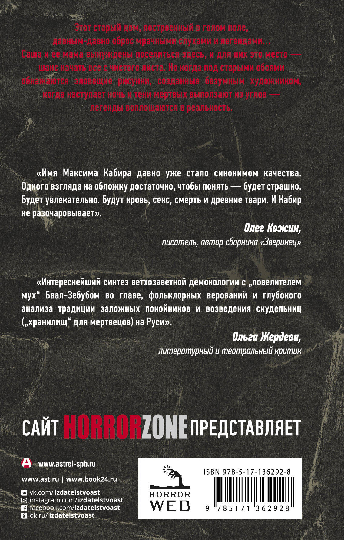 Лауреат премий «Мастера ужасов» и «Рукопись года», писатель и поэт, автор романа «Скелеты» Максим Кабир написал леденящий сердце и душу хоррор, где собрались и демоны из ветхозаветной мифологии, и заложные мертвецы, и богемные спириты начала XX века. И в результате получился яркий, динамичный и по-настоящему пугающий роман, в котором слышатся отголоски произведений Эдгара По, «Повелителя мух» и славянского фольклора. Построенный в голом поле старый дом давно оброс мрачными слухами и легендами. Однако Саша с мамой вынуждены поселиться здесь, поскольку это их единственный шанс начать жизнь с нового листа. Однако, когда под старыми обоями обнажаются созданные безумным художником жуткие рисунки, а тени мертвых с наступлением ночи выползают из всех углов, легенды становятся реальностью, а реальность обращается в жуткий фильм ужасов…| Издательство | Издательство "АСТ" |