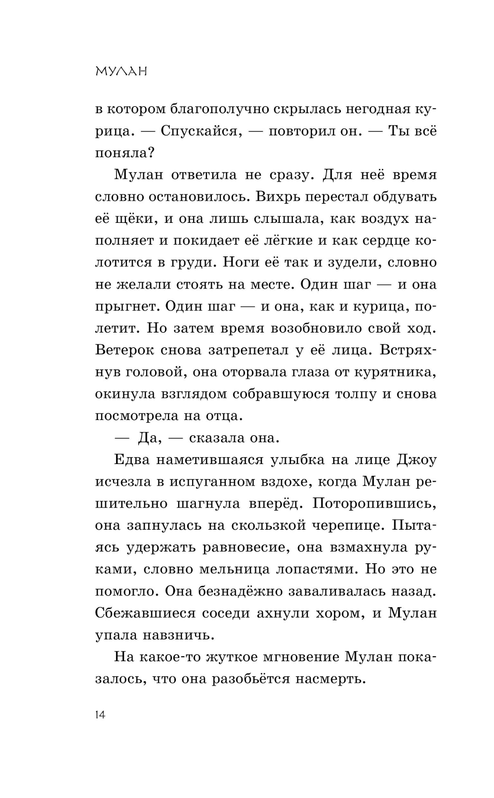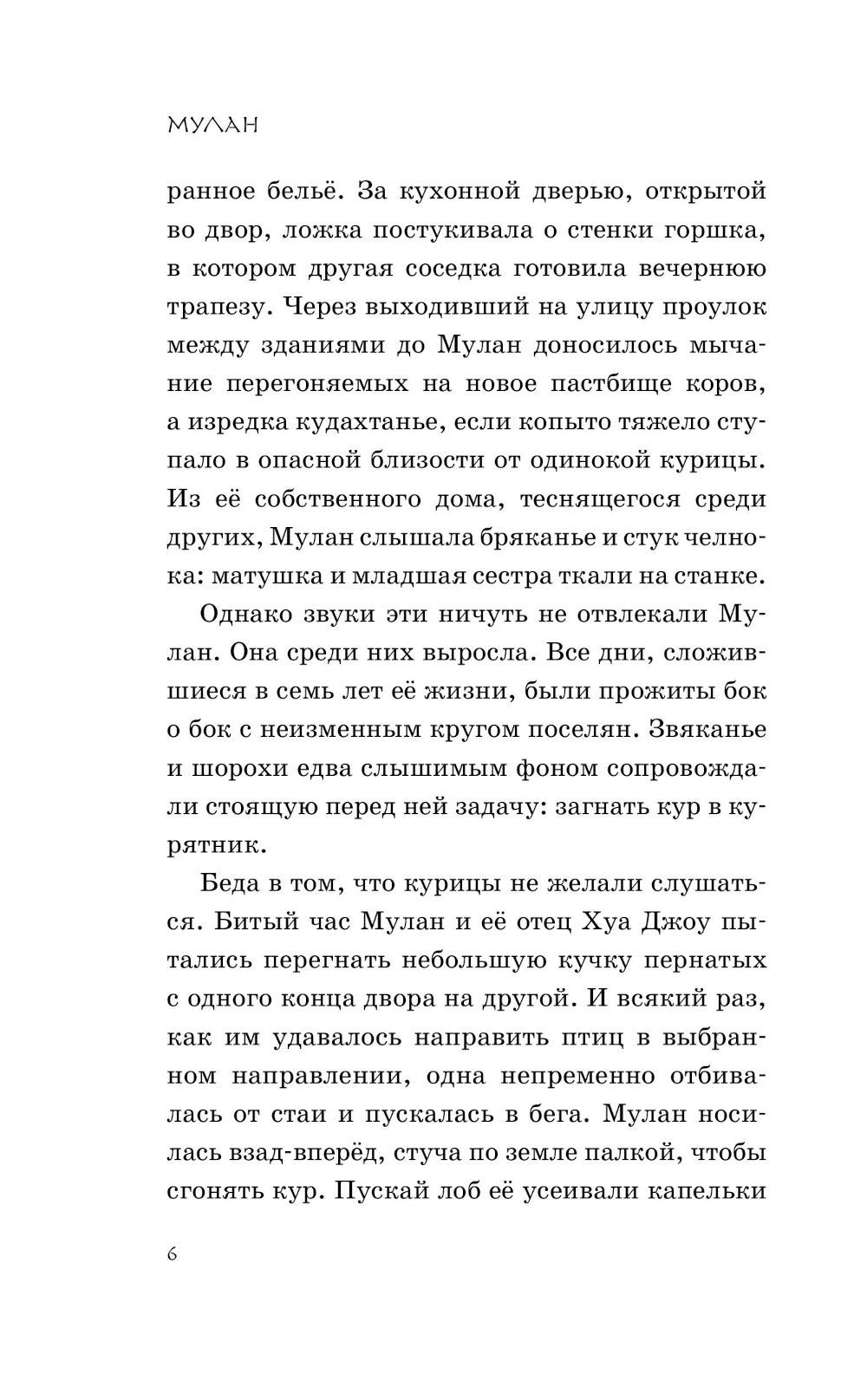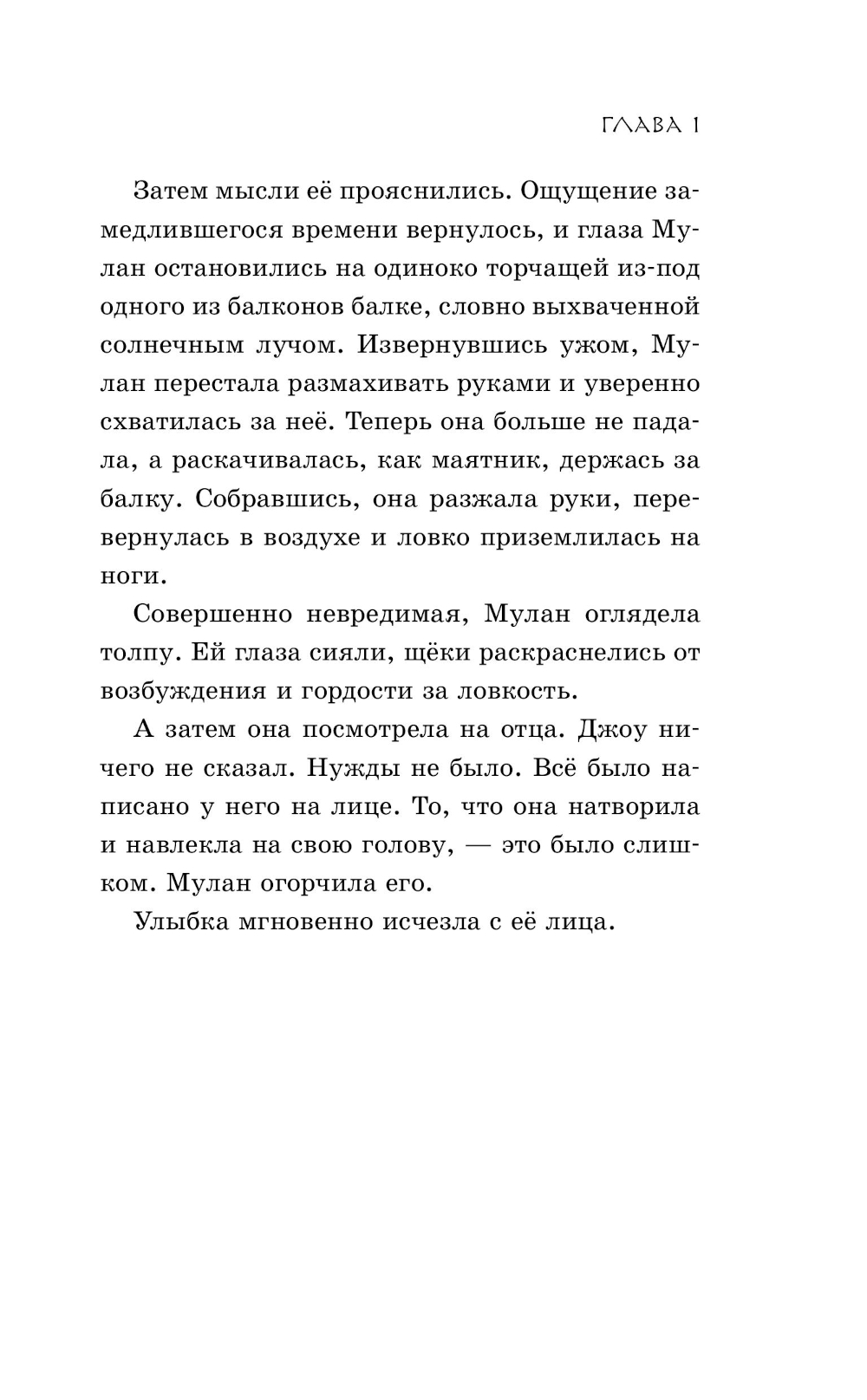 Обожающей свободу и приключения Мулан всю жизнь приходится сдерживать себя, чтобы не уронить честь своей семьи. Однако после катастрофы на встрече со свахой последний шанс не разочаровать родителей - достойно выйти замуж - развеивается как дым. Но судьба подготовила для Мулан ещё более серьёзное испытание. Её пожилого отца призывают на войну, и, желая спасти его от неминуемой гибели на поле боя, отважная девушка решает притвориться мужчиной и занять место родителя в строю. Теперь ей предстоит скрывать свою тайну ото всех, иначе её саму и всю её семью ждёт бесчестье. Справится ли Мулан? И станет ли тем героем, в котором сейчас так отчаянно нуждается Китай?| Издательство | Эксмо |