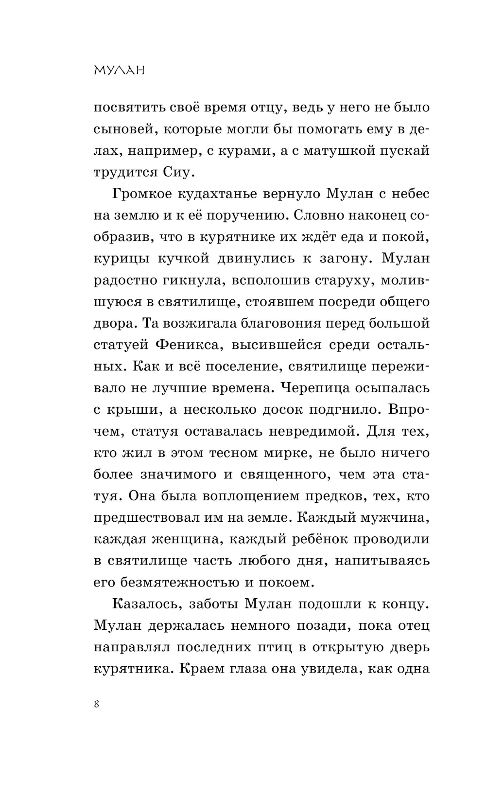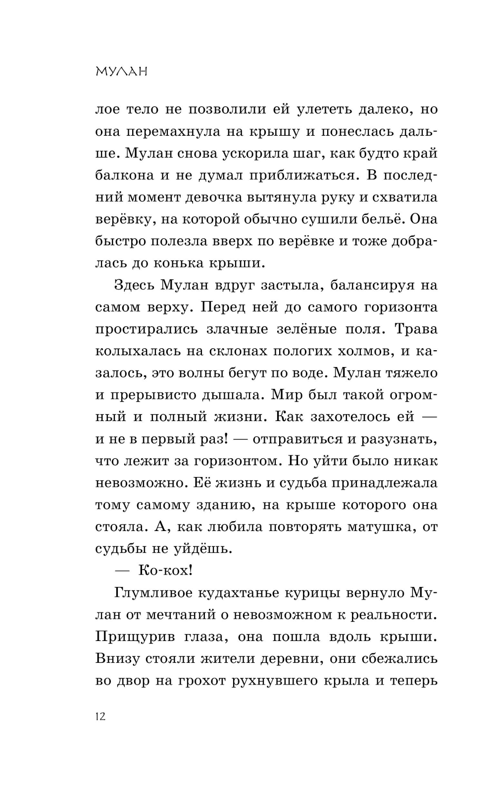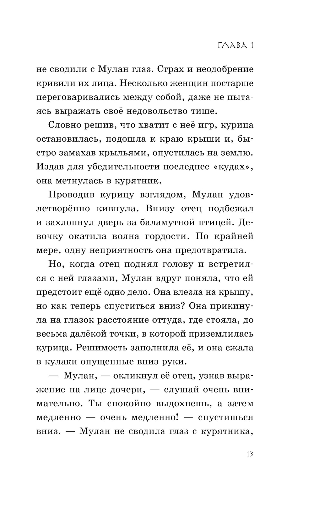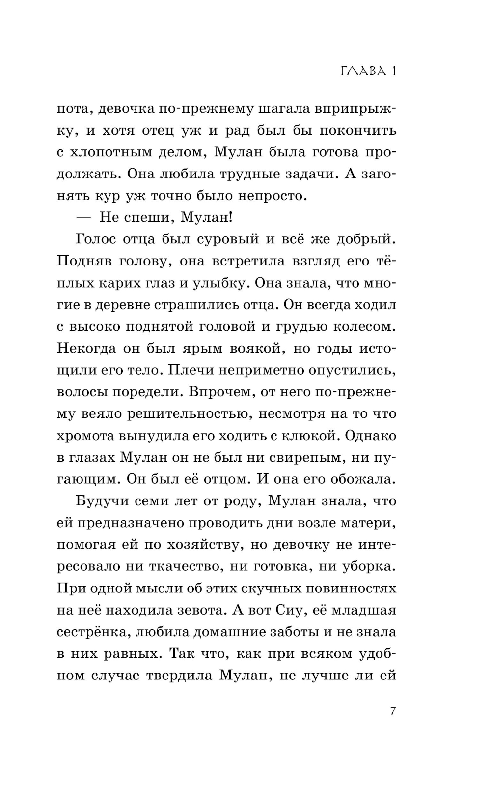 Обожающей свободу и приключения Мулан всю жизнь приходится сдерживать себя, чтобы не уронить честь своей семьи. Однако после катастрофы на встрече со свахой последний шанс не разочаровать родителей - достойно выйти замуж - развеивается как дым. Но судьба подготовила для Мулан ещё более серьёзное испытание. Её пожилого отца призывают на войну, и, желая спасти его от неминуемой гибели на поле боя, отважная девушка решает притвориться мужчиной и занять место родителя в строю. Теперь ей предстоит скрывать свою тайну ото всех, иначе её саму и всю её семью ждёт бесчестье. Справится ли Мулан? И станет ли тем героем, в котором сейчас так отчаянно нуждается Китай?| Издательство | Эксмо |