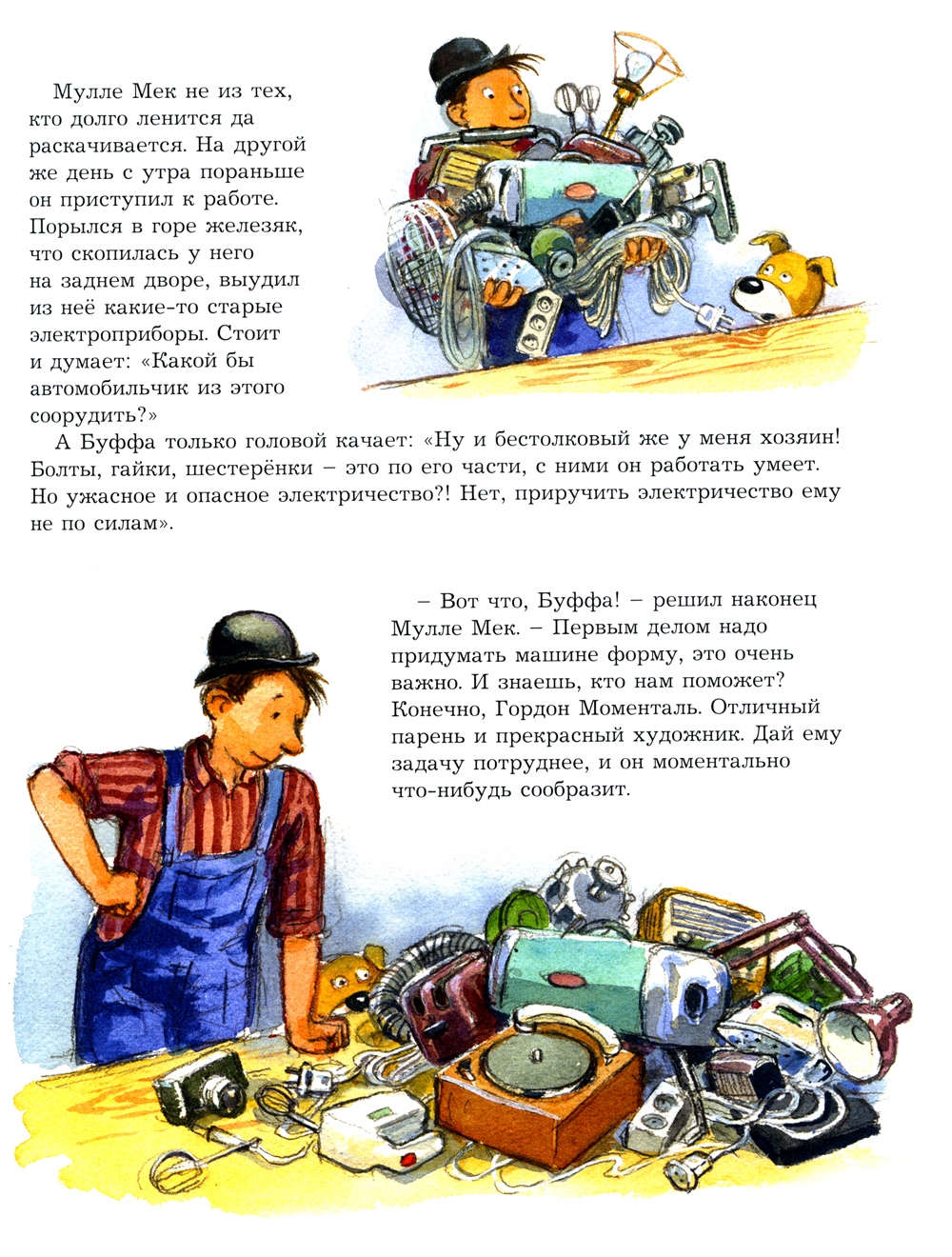 Умелый механик Мулле Мек - герой многих детских книг. Из груды ненужных железяк он может сделать и автомобиль, и мотоцикл, и самолёт, и многое другое, а заодно объяснить простыми словами, как все эти машины работают. На этот раз Мулле Мек решил собрать экологически чистый электромобиль. Вот только в электричестве он не очень-то разбирается, поэтому на помощь ему приходят друзья - Лукас Дизель и Дорис Считайссон. Они расскажут Мулле и читателям, что такое электрический ток, откуда он берётся и как работает.| Издательство | Мелик-Пашаев |