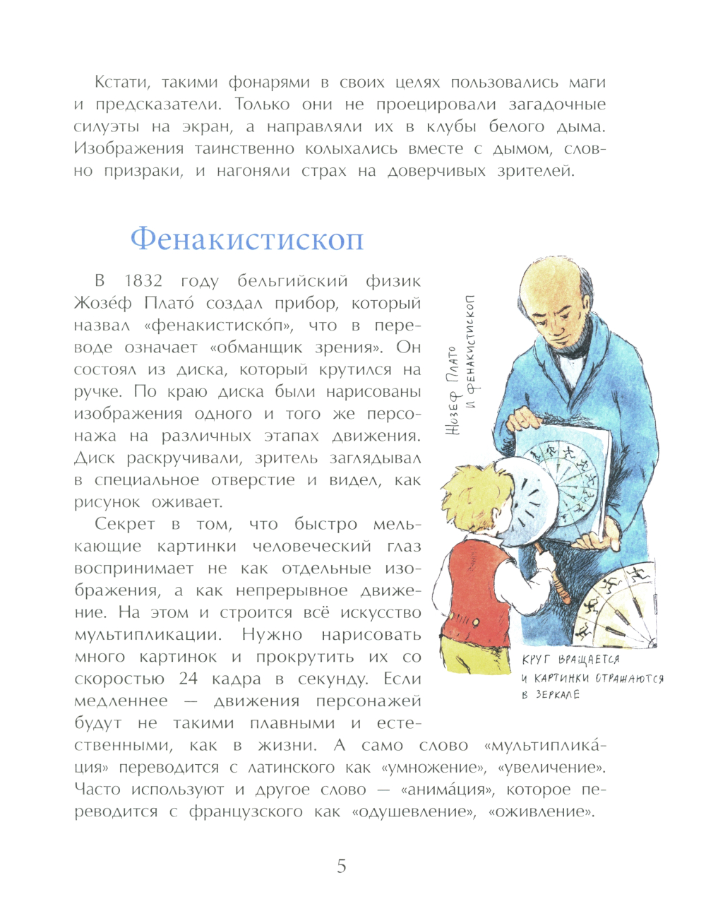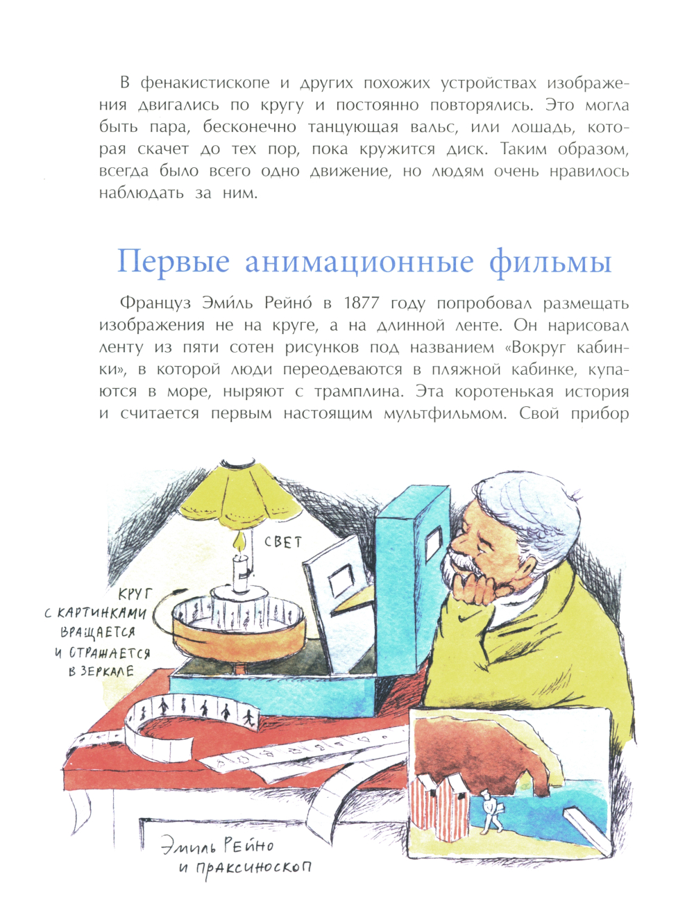 Смотреть мультфильмы любят все. Ведь это похоже на волшебство: нарисованный персонаж вдруг начинает двигаться, говорить, улыбаться... В чём секрет этого искусства, как оно возникло и развивалось, в каких техниках снимают мультфильмы сейчас и как сделать свой собственный мультик в домашних условиях, рассказано в этой книжке, открывающей читателю увлекательный и разнообразный мир анимации.