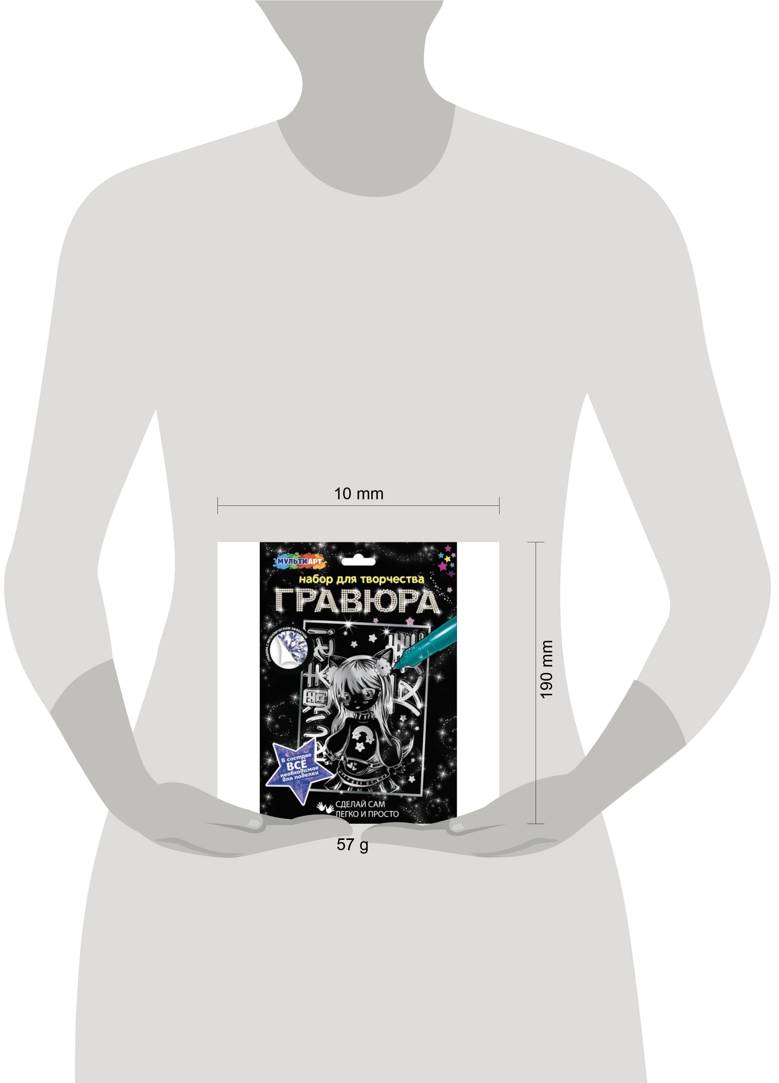 Набор для творчества "Гравюра. Аниме" ТМ "Мульти Арт" - отличный подарок для ребёнка, который будет способствовать развитию его творческих способностей: - с металлическим эффектом (серебристый цвет) - безопасно - в составе всё необходимое для поделки: основа + штихель С помощью данного набора юный художник сможет создать эффектную серебристую картину на чёрном фоне. Контур рисунка уже нанесён на основу, остаётся только процарапать изображение специальным штихелем. Готовую поделку можно подарить близким или использовать для украшения интерьера. Занятия с наборами для творчества ТМ "Мульти Арт" развивают: - внимание и усидчивость - творческое мышление - моторику рук - воображение Размер основы: 18 х 24 см. Материал: картон + пластмасса. Рекомендовано детям от 3-х лет.| Издательство | С-Маркет ООО |
