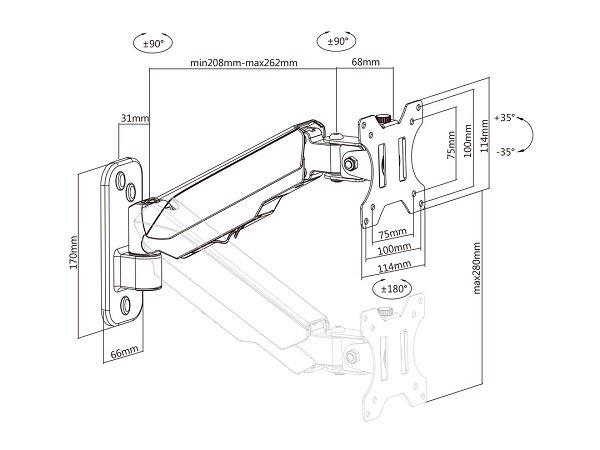 Универсальный и стандарт VESA: 75x75 100x100 мм