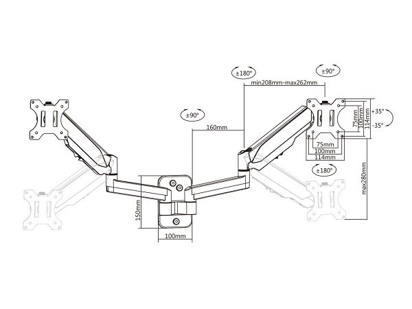 Универсальный и стандарт VESA: 75x75 100x100 мм