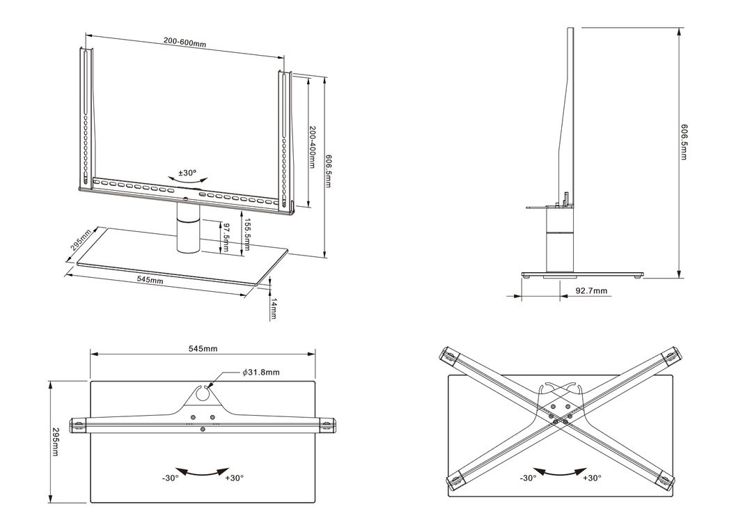 Стандарт VESA: 200x200 300x200 300x300 400x200 400x400 500x300 600x400 мм