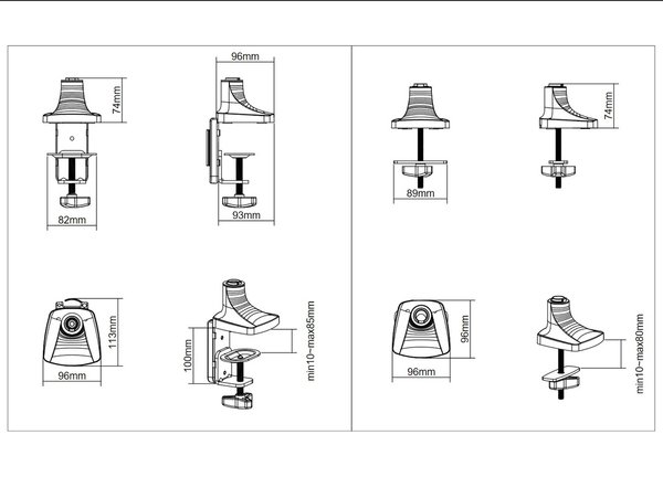Высота: 170-505 мм Регулируется от столешницы до центра пластины VESA