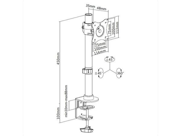 Регулируемая высота от стола до центра пластин VESA: 100 - 450 мм