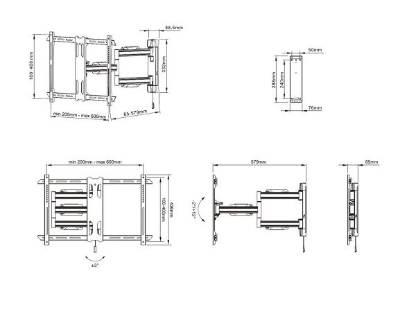 Стандарт VESA: 200 x 200, 300 x 200, 300 x 300, 400 x 200,