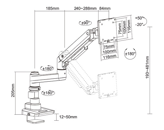 Регулируется от столешницы до центра пластины VESA Перемычка: Да