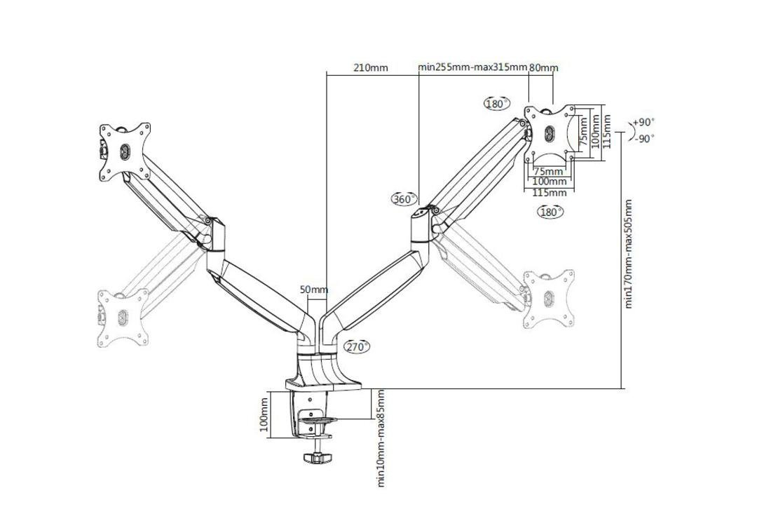 Регулируемая высота от столешницы до центра пластины VESA: 170-505 мм.