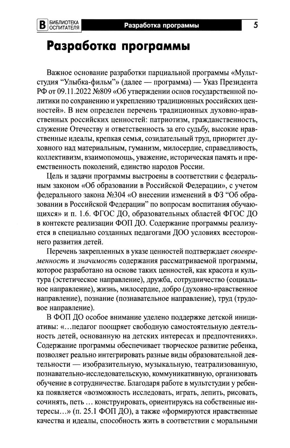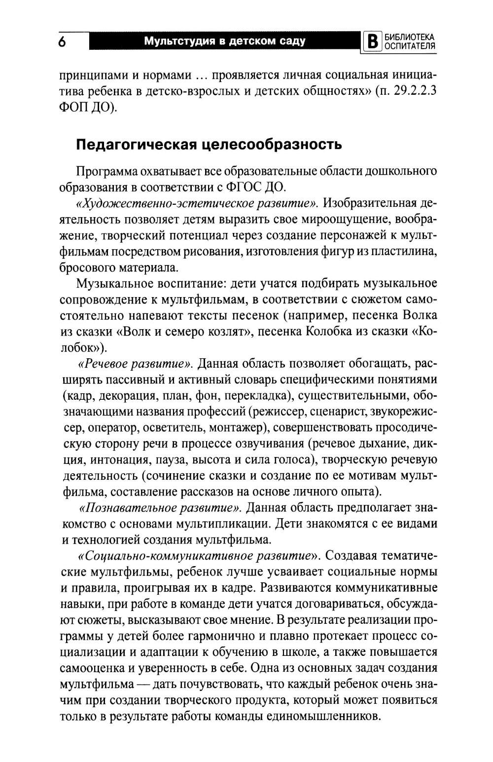 Работа над созданием с детьми мультфильмов в рамках реализации парциальной программы как современной технологии построена на деятельностном подходе, направлена на развитие технологического процесса, воспитание нравственных чувств. Представленный материал содержит описание и основания разработки программы, этапы создания мультфильмов, календарно-тематическое планирование на два учебных года для старших дошкольников (5-7 лет), а также конспекты занятий и сценарии авторских мультфильмов, освещает вариативные формы, способы, средства реализации образовательного процесса, обеспечивающие его эффективность в условиях современного образования. Программа соответствует ФГОС ДО и ФОП ДО. В книге представлено электронное приложение с описанием оборудования и фотоматериалами - примерами детских работ, ссылками на созданные мультфильмы. Пособие предназначено для воспитателей, музыкальных руководителей, методистов, других сотрудников ДОО, а также всех заинтересованных взрослых.| Издательство | Творческий центр Сфера |