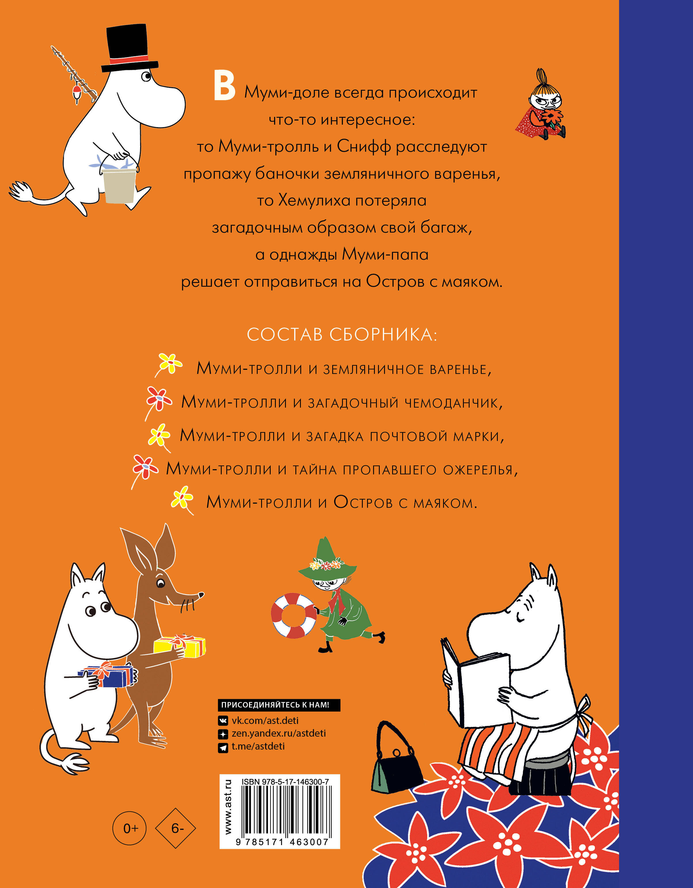 В Муми-доле всегда происходит что-то интересное: то Муми-тролль и Снифф, словно Шерлок Холмс и доктор Ватсон, расследуют пропажу баночки земляничного варенья, то Хемулиха потеряла загадочным образом свой багаж, а однажды Муми-папа вместе со всем своим семейством решает отправиться на Остров с маяком. "Муми-тролли и Приключения в Муми-доле" - это весёлый сборник, куда вошли 5 историй: "Муми-тролли и земляничное варенье", "Муми-тролли и загадочный чемоданчик", "Муми-тролли и загадка почтовой марки", "Муми-тролли и тайна пропавшего ожерелья", "Муми-тролли и Остров с маяком".| Издательство | ИЗДАТЕЛЬСТВО "АСТ" |