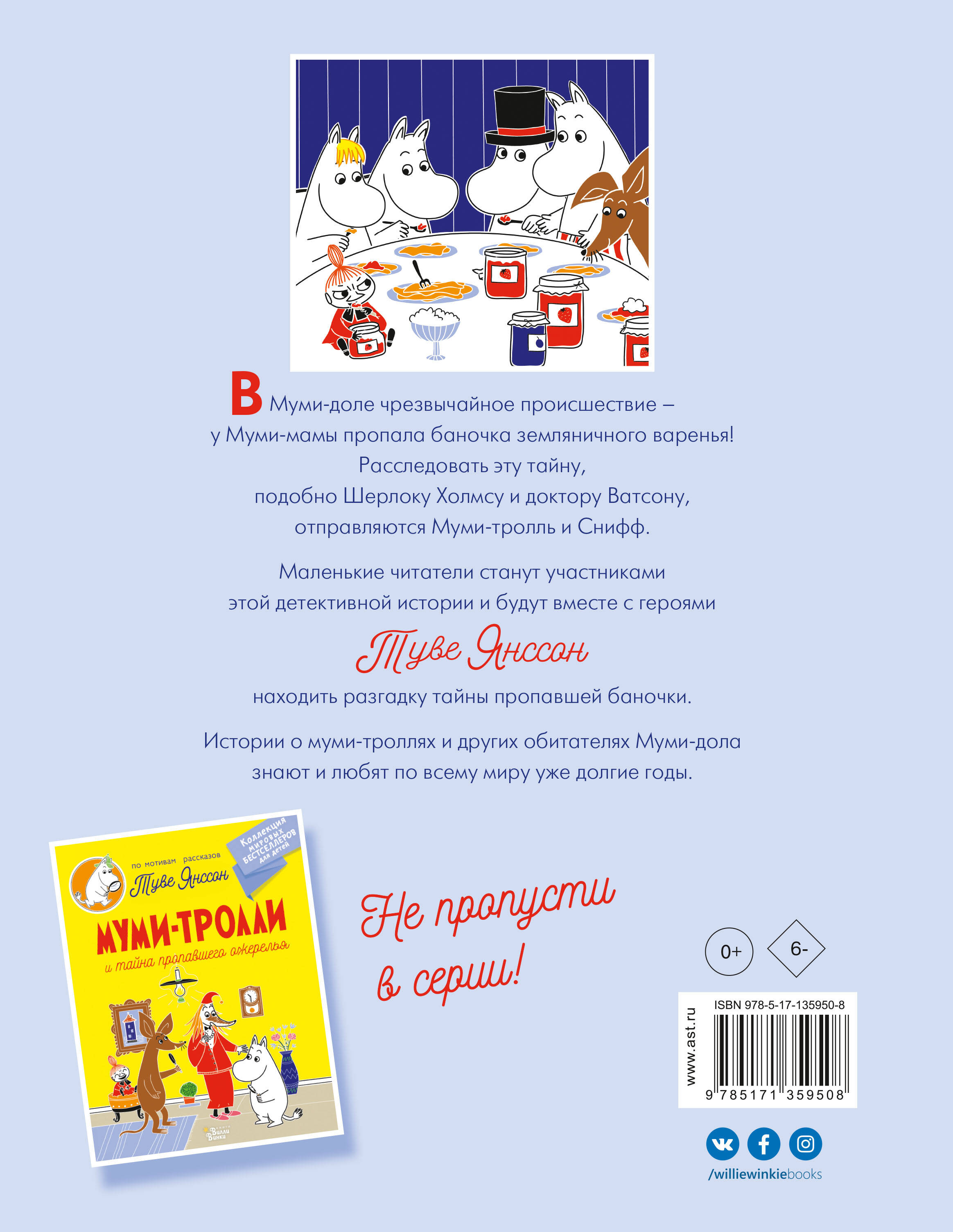 В Муми-доле чрезвычайное происшествие - у Муми-мамы пропала баночка земляничного варенья! Расследовать эту тайну, подобно Шерлоку Холмсу и доктору Ватсону, отправляются Муми-тролль и Снифф. Маленькие читатели станут участниками этой детективной истории и будут вместе с героями Туве Янссон находить разгадки тайны пропажи баночки варенья. Для детей до 3-х лет.| Издательство | Издательство "АСТ" |