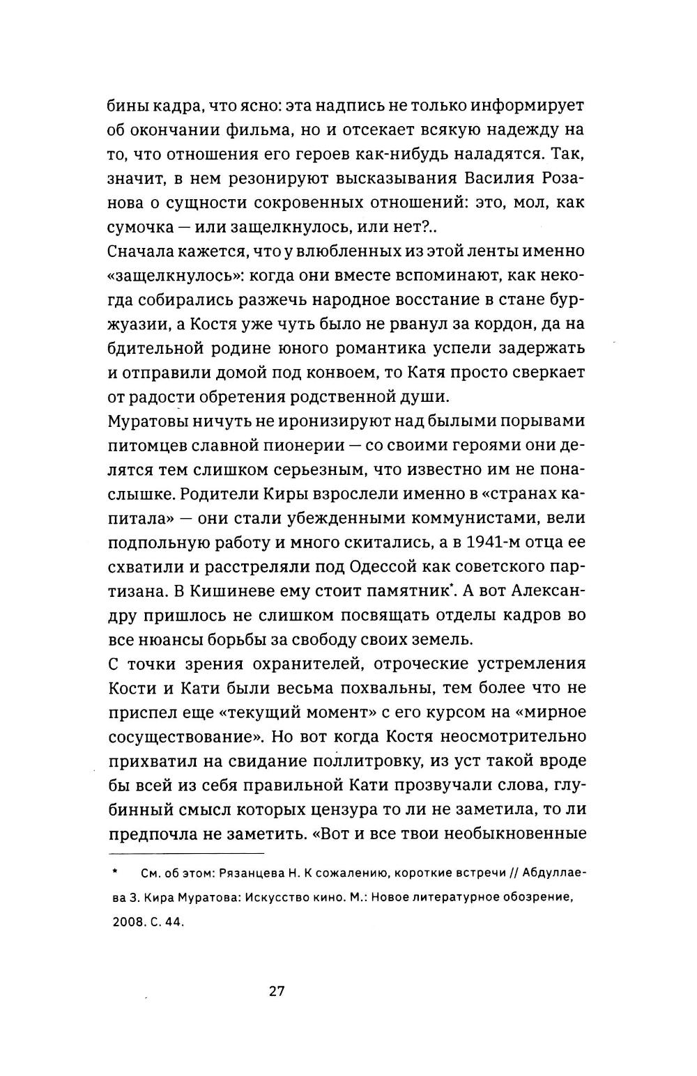 Олег Ковалов говорит о фильмах Киры Муратовой со скрупулезностью исследователя и страстью киномана. В новой книге он рассказывает о том, как на протяжении полувека менялся ее кинематограф - от психологических драм 1960-х к причудливой смеси китча и трагедии 2000-х, где пошлость оказывается неотделима от искренних чувств. Эта книга - не о тяжеловесном наследии классика, а о вечно молодом кино режиссера, снимающего о времени, но от времени независимого.| Издательство | СЕАНС |