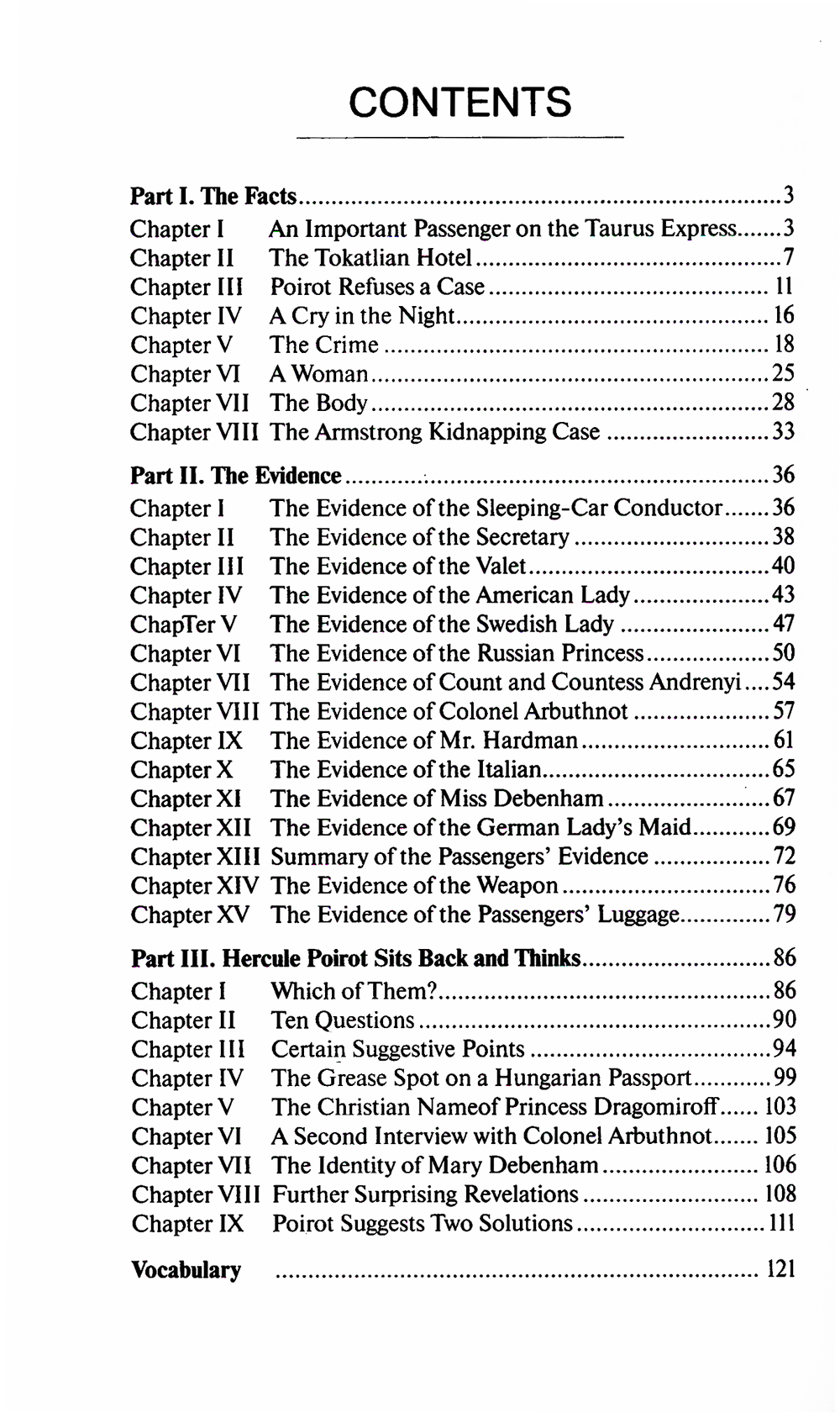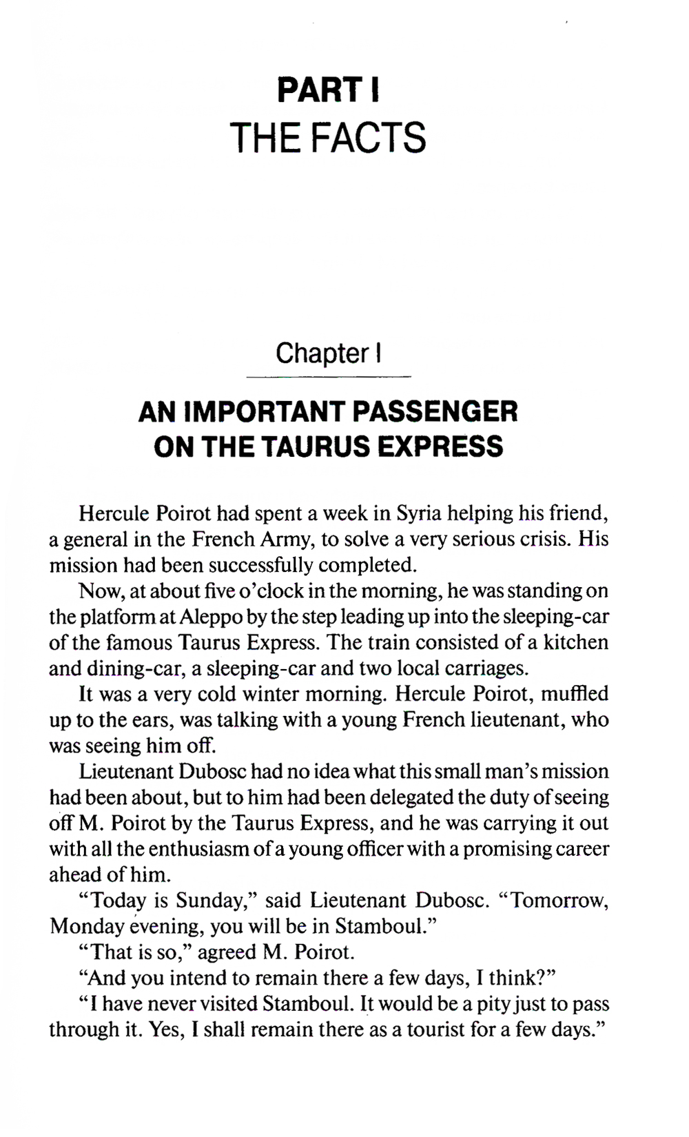 Трансъевропейский экспресс оказывается в снежном плену на пути следования из Стамбула в Кале. Сильный снегопад вынуждает машиниста остановить поезд в поле. Между тем в одном из купе обнаруживают тело убитого американца. За расследование убийства берётся необычный пассажир, знаменитый бельгийский детектив Эркюль Пуаро. Текст сокращён и адаптирован. Уровень В1.| Издательство | Антология |