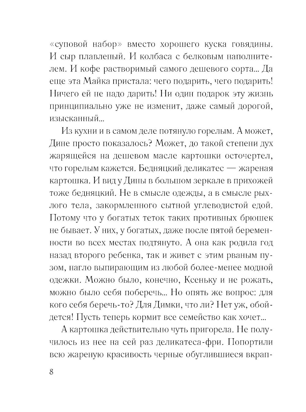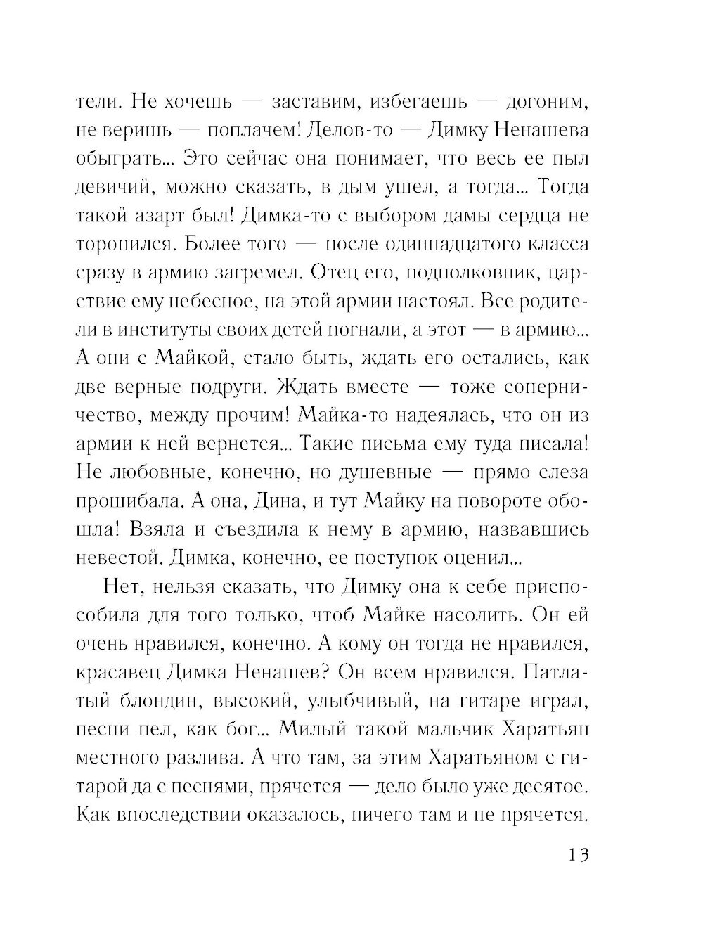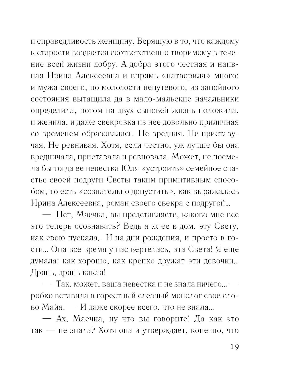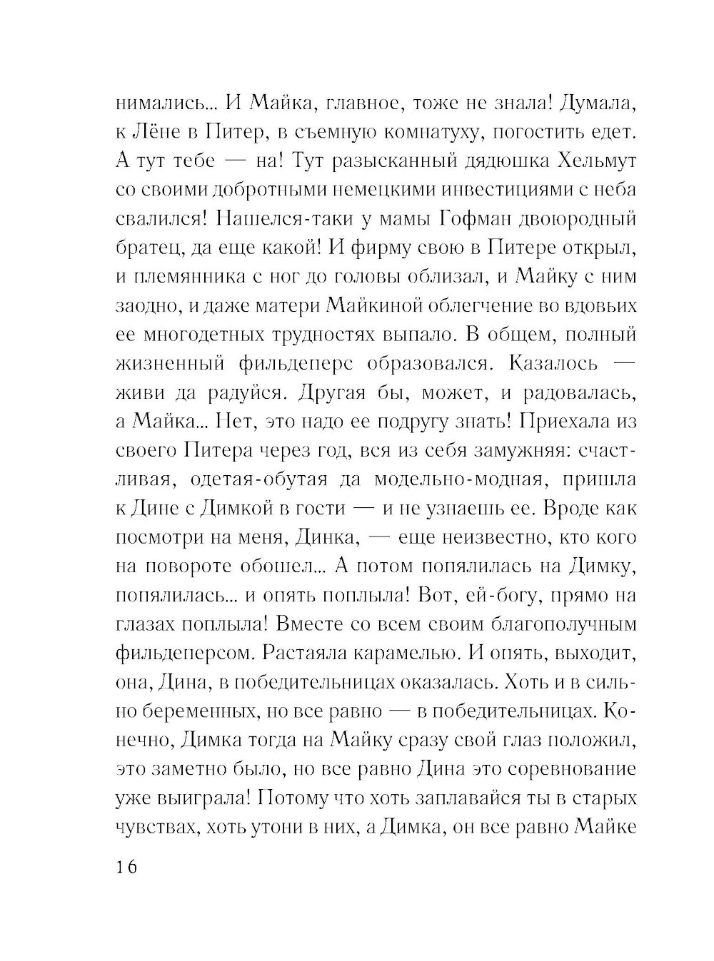 Майя любила Димку всю жизнь. Но наивность - враг счастья, а потому женой Димки стала лучшая подруга Майи - Дина. Стесняясь и презирая себя, Майя начала тайный роман с мужем подруги... Дина должна была страдать, но торжествовала: она знала об измене с первого дня. Ей нравилось, что оба мучаются. Даже замужество Майи не исправило ее положения - она продолжала любить Димку. Что же еще сделать, чтобы больше досадить счастливой страдалице, после свадьбы ставшей еще и богачкой? И Дина придумала: она написала письмо законному супругу Майи...| Издательство | Эксмо |