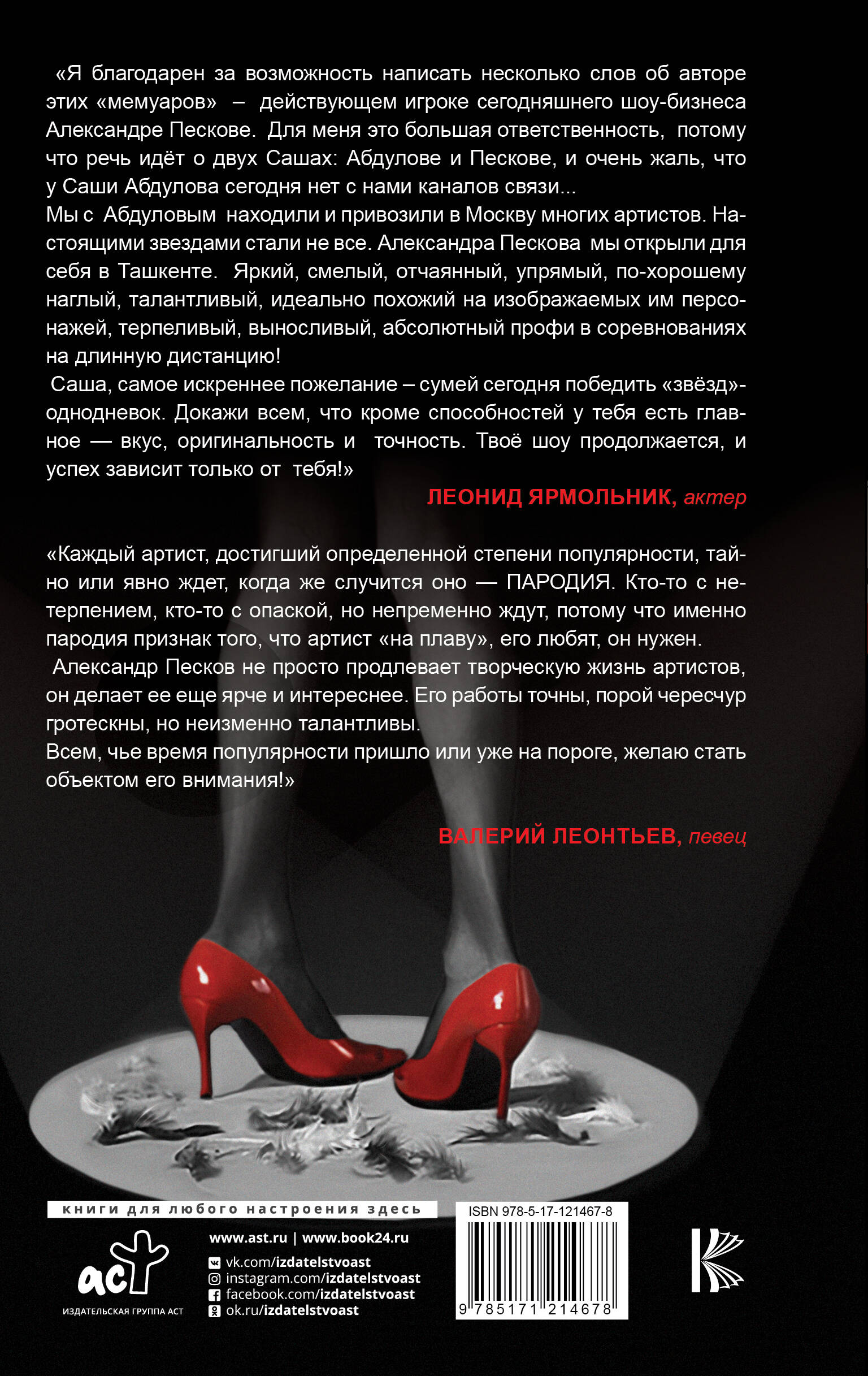 В своей книге Король Пародии Александр Песков рассказывает шокирующие факты собственной биографии. Предельно откровенно вспоминает о своем детстве, первой любви, работе в цирке, закулисье шоу-бизнеса, знакомстве со многими известными артистами и деятелями культуры… Трогательная история жизни Александра Пескова не оставит равнодушным никого. Напротив, вызовет чувство сопричастности и заставит читателей сделать правильные выводы.| Издательство | ИЗДАТЕЛЬСТВО "АСТ" |