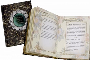 Переплет книг выполнен методом шелкографии с золотым и серебряным тиснением на обложках. С трехсторонним золотым и серебряным обрезом и шелковым ляссе.