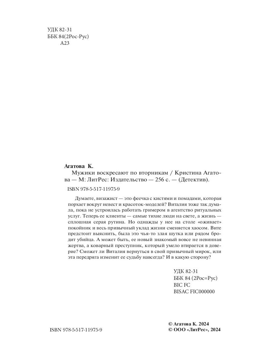 Думаете, визажист - это феечка с кистями и помадами, которая порхает вокруг невест и красоток-моделей? Виталия тоже так думала, пока не устроилась работать гримером в агентство ритуальных услуг. Теперь ее клиенты - самые тихие люди на свете, а жизнь - сплошная серая рутина. Но однажды у нее на столе оживает покойник и весь привычный уклад жизни сменяется хаосом. Вите предстоит выяснить, была это чья-то злая шутка или рядом бродит убийца. А может быть, ее новый знакомый вовсе не невинная жертва, а коварный преступник, который умело втирается в доверие? Сможет ли Виталия вернуться в свой привычный мирок, или эта передряга изменит ее судьбу навсегда? И в какую сторону?| Издательство | Т8 RUGRAM |