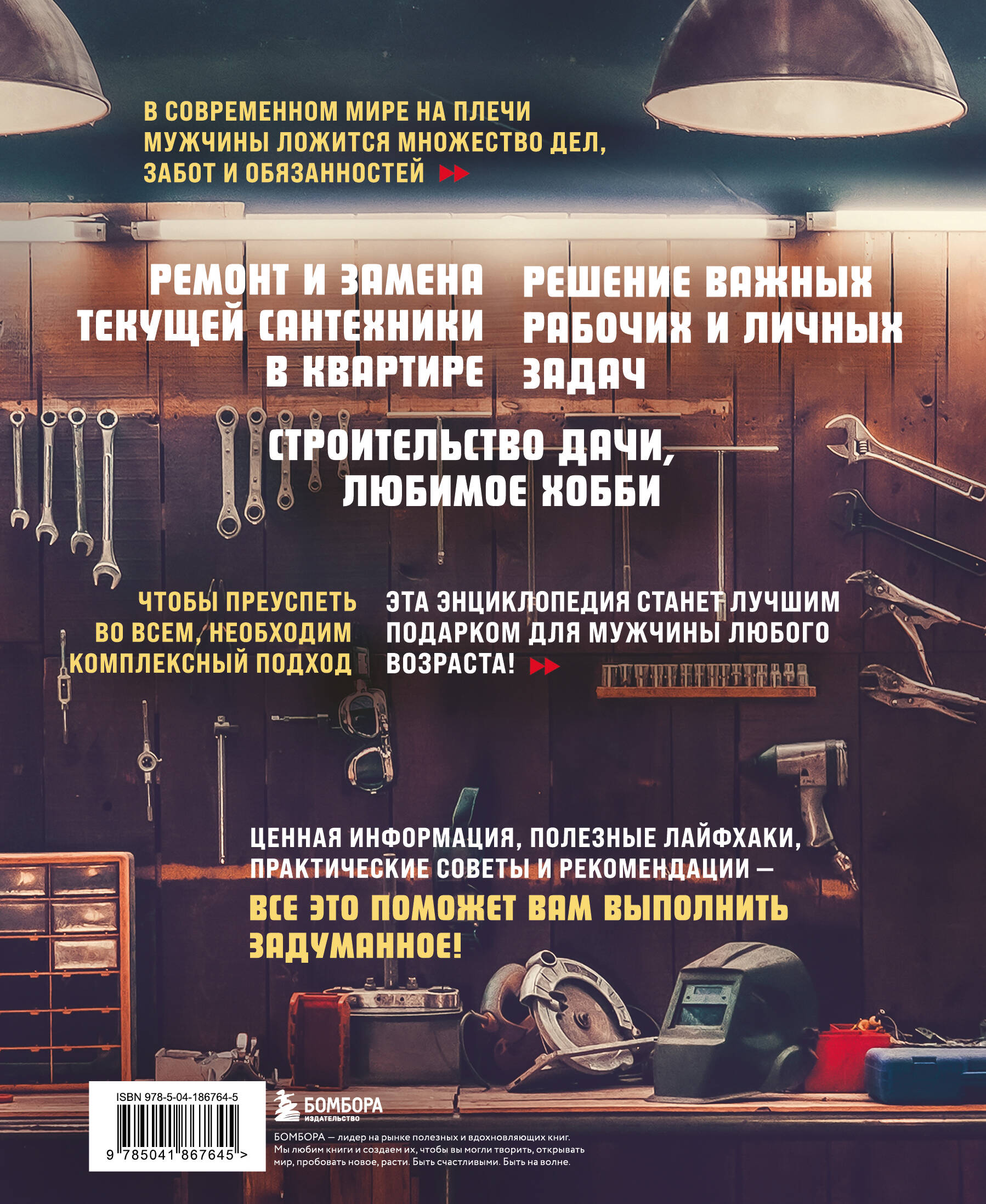 Ремонт, стройка, решение важных домашних и рабочих задач, а еще нужно найти время на хобби… Как со всем этим справиться современному мужчине, который находится в ежедневной воронке дел? Тут необходим комплексный подход! И эта энциклопедия станет лучшим подарком для мужчины любого возраста! Ведь в ней вы найдете информацию на все случаи жизни: • мелкий и крупный ремонт своими руками; • строительство и проведение коммуникаций в свой дом или на дачу; • выбор интересного мужского хобби, которое принесет расслабление и удовольствие; • правильное распределение времени, продуктивность и эффективные способы решения разных задач. Ценная информация, полезные лайфхаки, практические советы и рекомендации - все это поможет вам стать настоящим хозяином своего дома!| Издательство | ООО "Издательство "Эксмо" |