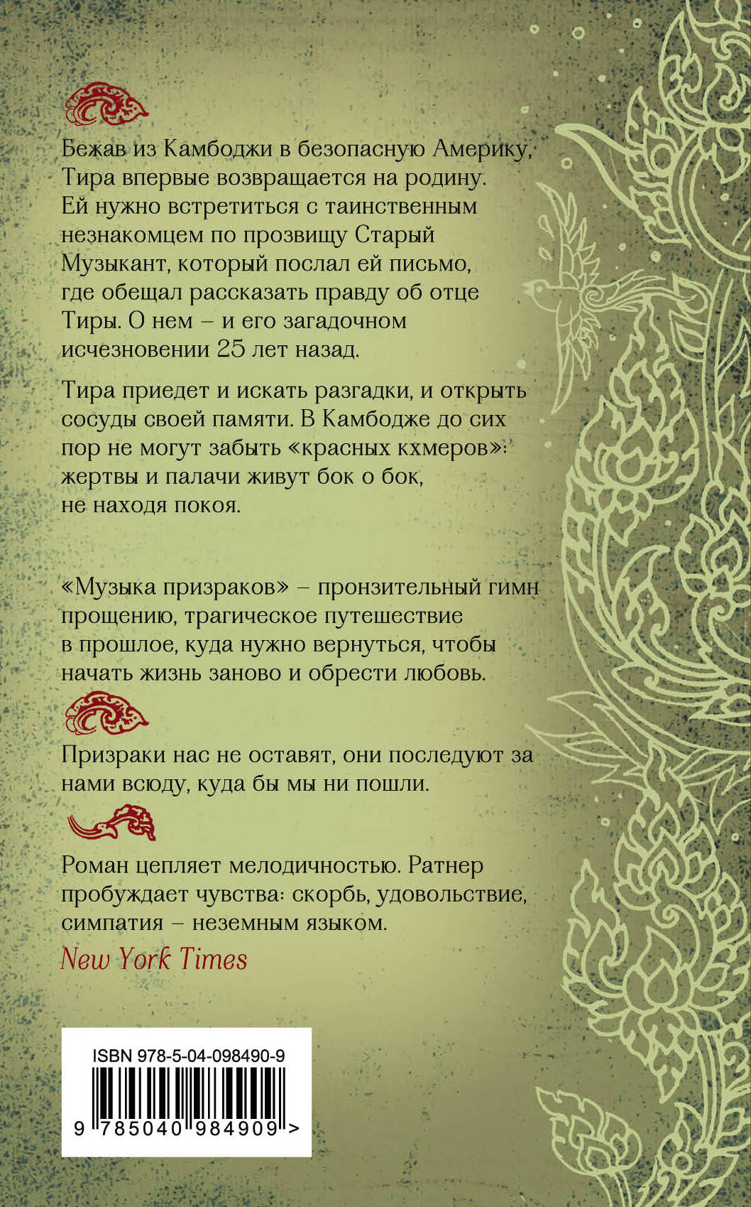 Бежав из Камбоджи в безопасную Америку, Тира впервые возвращается на родину. Ей нужно встретиться с таинственным незнакомцем по прозвищу Старый Музыкант, который послал ей письмо, где обещал рассказать правду об отце Тиры. О нем и его загадочном исчезновении 25 лет назад. Тира приедет и искать разгадки, и открыть сосуды своей памяти. В Камбодже до сих пор не могут забыть "красных кхмеров": жертвы и палачи живут бок о бок, не находя покоя. "Музыка призраков" - пронзительный гимн прощению, трагическое путешествие в прошлое, куда нужно вернуться, чтобы начать жизнь заново и обрести любовь.| Издательство | ООО "Издательство "Эксмо" |