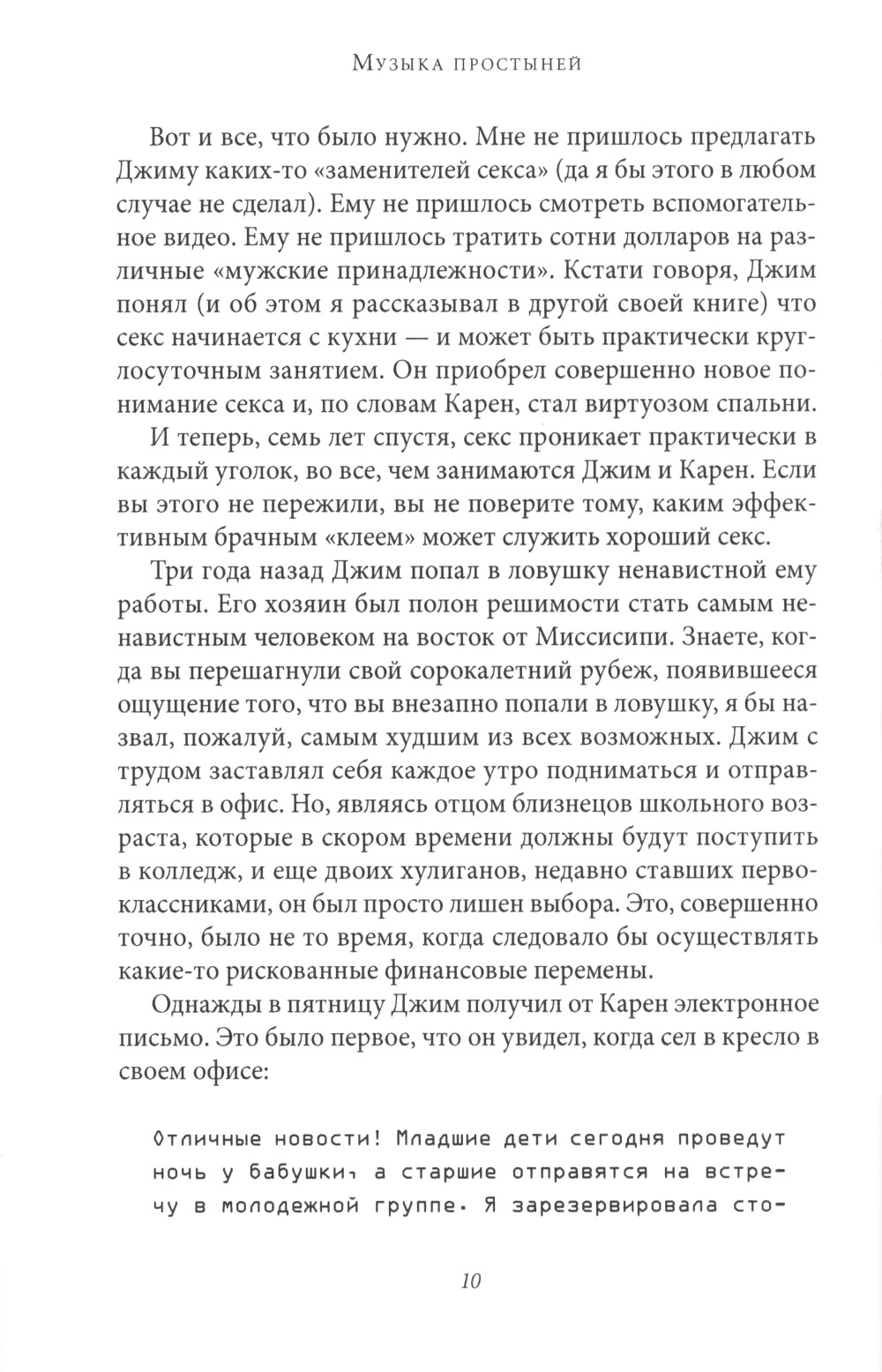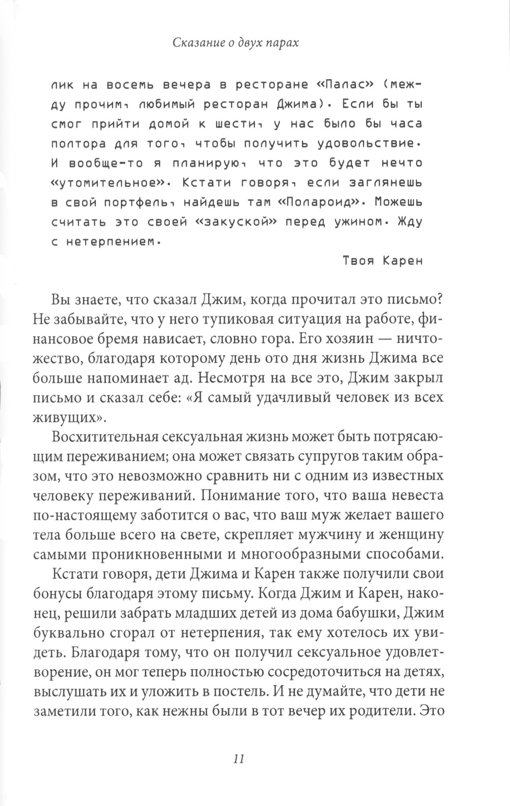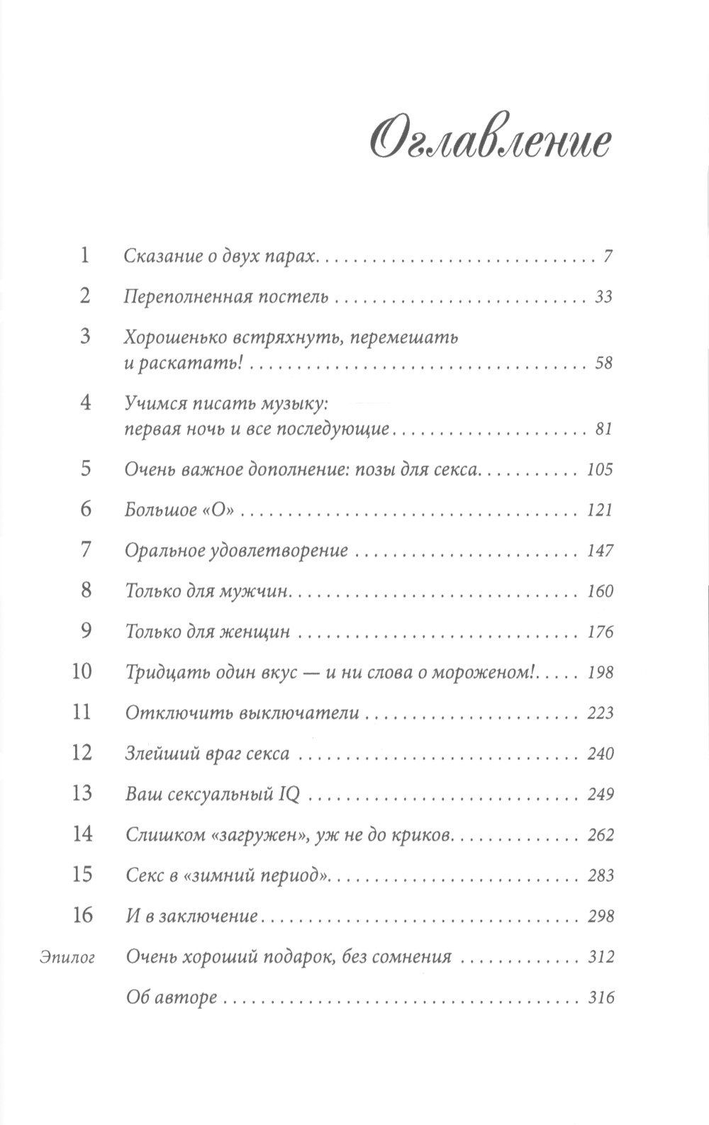 "Все, что нужно, это лишь практика… и правильное отношение, - говорит доктор Леман. - Секс является выражением качества всей вашей любовной жизни, а не простым познанием тел друг друга. Так почему не отложить в сторону запреты и не подарить вашему избраннику лучший подарок из всех возможных - сексуально увлеченного супруга?"