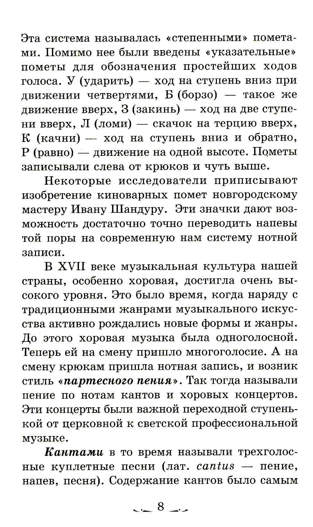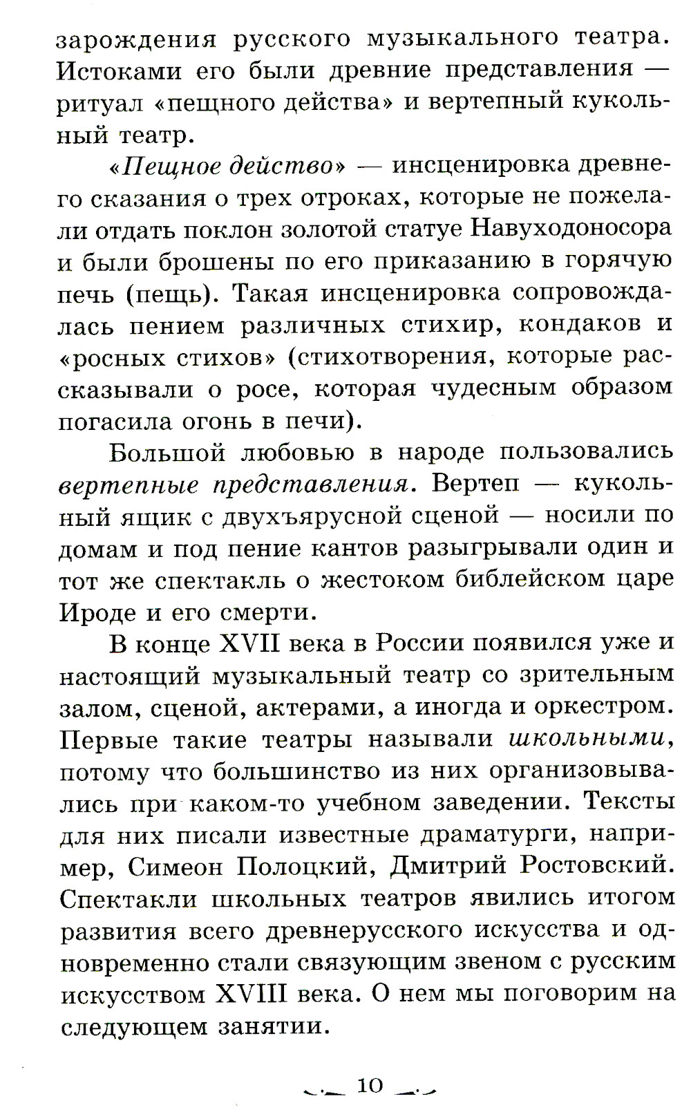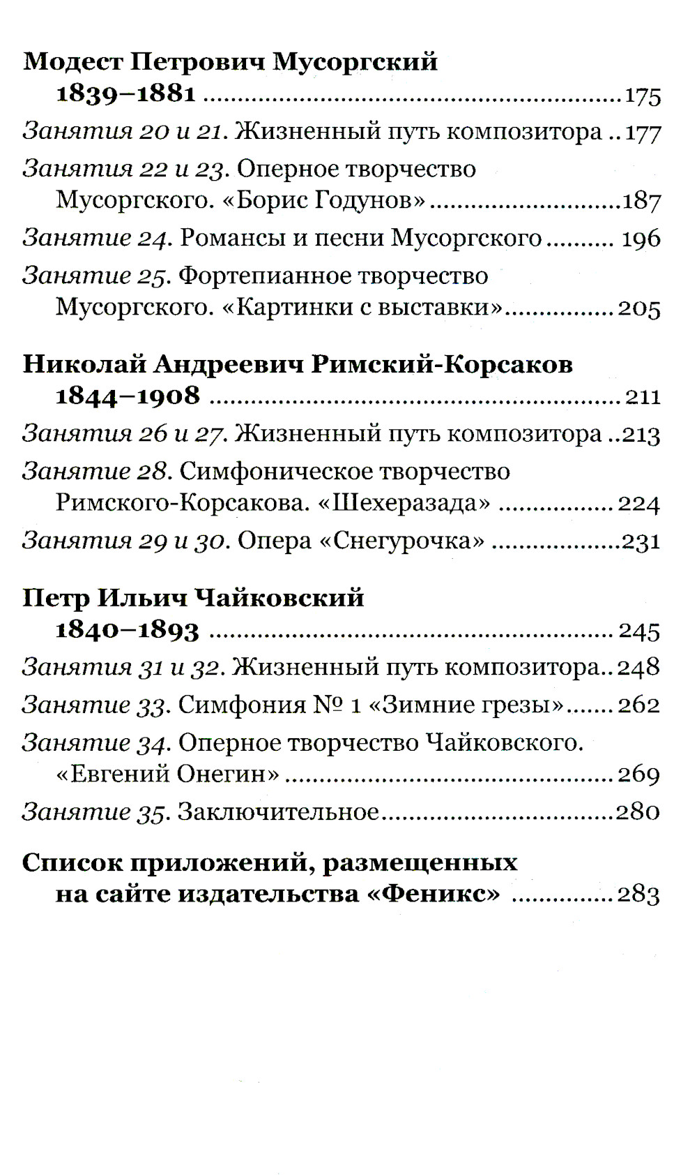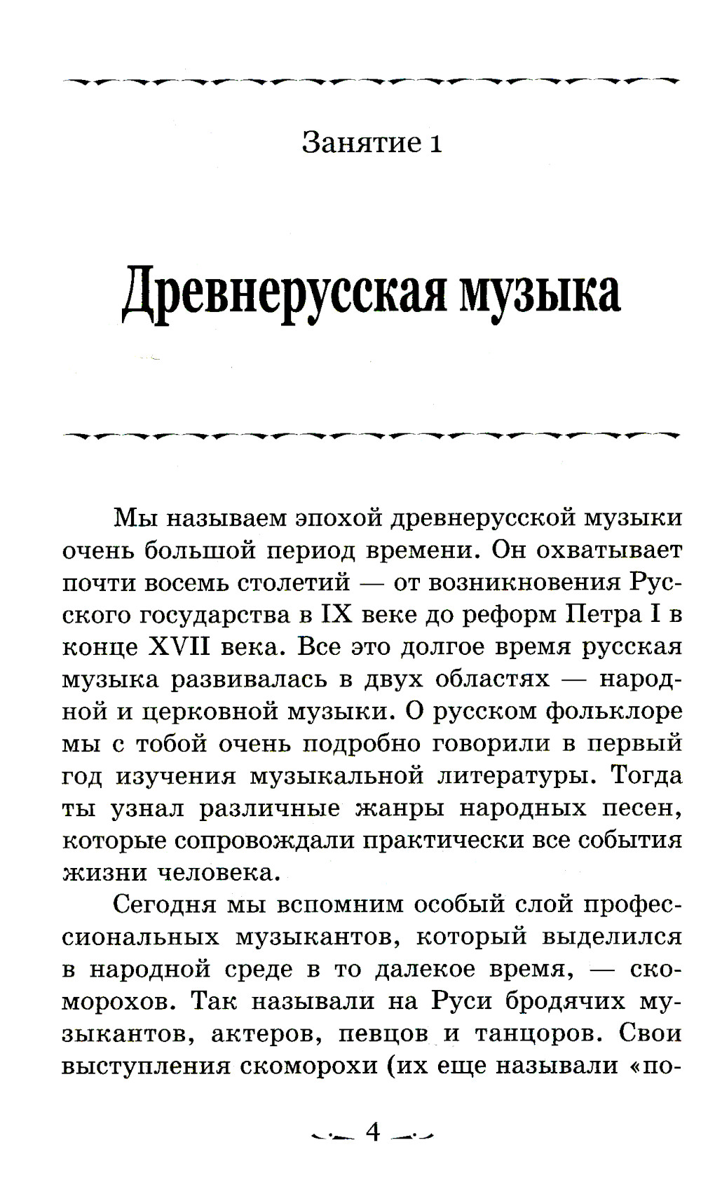 Появление данного учебного пособия связано с тем, что традиционная Программа по музыкальной литературе для ДМШ вышла в свет в 1956 г. и, не меняясь качественно, выдержала затем несколько переизданий (1962, 1970, 1979, 1982 гг.). Естественно, многие установки и тематические планы типовой программы устарели и не соответствуют требованиям новых подходов и методик музыкального воспитания детей. В последние годы стали появляться другие модели программ, учебные планы, адаптирующие содержание курса к новым историческим и социально-культурным условиям. Настоящее пособие опирается на многолетний опыт преподавания предмета «Музыкальная литература» в ДМШ, изложенный в авторских программах и методических рекомендациях Е. Лисянской, Ю. Агеевой, А. Хотунцова, М. Куклинской и т.д. Учебное пособие для третьего года обучения охватывает огромный период развития русской музыки: от древнерусской эпохи вплоть до конца XIX века. Помимо традиционных тем в него вошли занятия, посвященные развитию русской музыкальной культуры до Глинки, особенностям художественной жизни России во 2-й половине XIX века. Монографические занятия включают также разбор произведений, не вошедших в традиционную Программу курса музыкальной литературы. При создании данного пособия мы учитывали то, что к числу основных задач музыкальных школ относится не только развитие музыкальных способностей детей, понимания основ классического и современного музыкального творчества, но и подготовка активных слушателей и любителей музыки. Поэтому в нашу книгу вошли также дополнительные ознакомительные материалы. Они объединены в рубрику «Рассказывают, что...» и обращены к широким массам детской аудитории.| Издательство | Феникс |