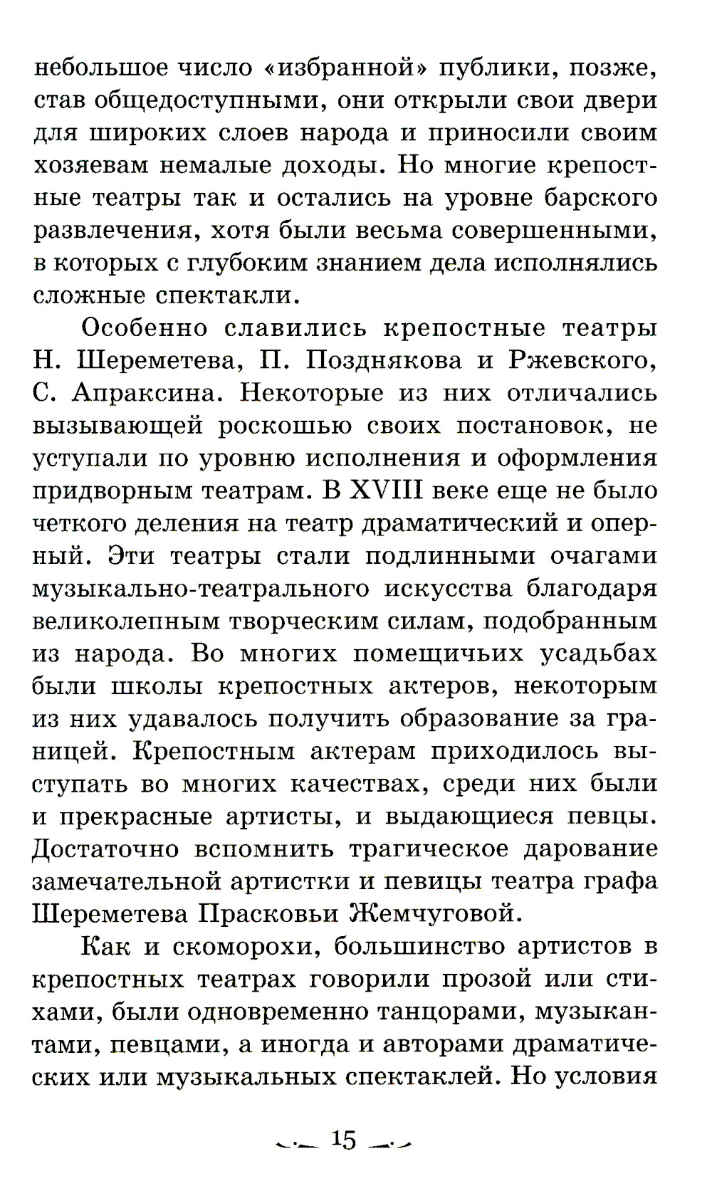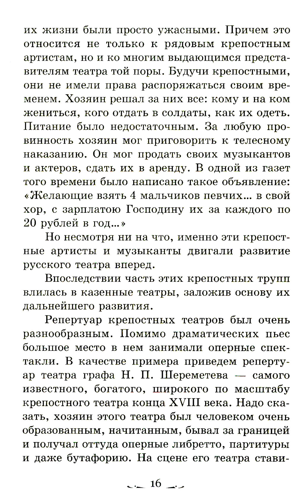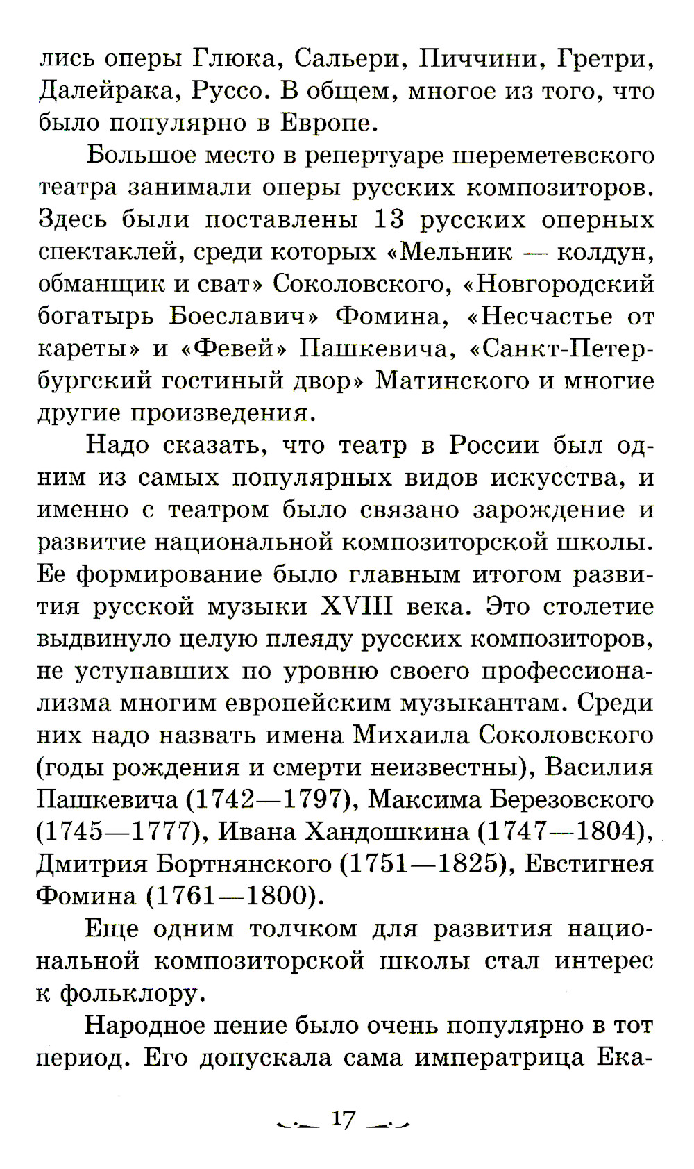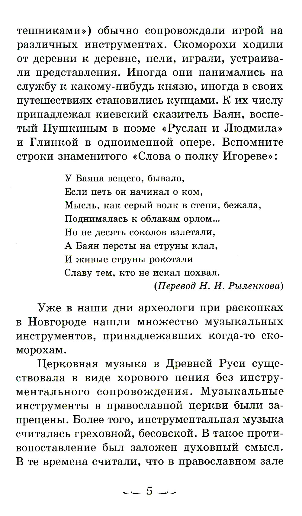 Появление данного учебного пособия связано с тем, что традиционная Программа по музыкальной литературе для ДМШ вышла в свет в 1956 г. и, не меняясь качественно, выдержала затем несколько переизданий (1962, 1970, 1979, 1982 гг.). Естественно, многие установки и тематические планы типовой программы устарели и не соответствуют требованиям новых подходов и методик музыкального воспитания детей. В последние годы стали появляться другие модели программ, учебные планы, адаптирующие содержание курса к новым историческим и социально-культурным условиям. Настоящее пособие опирается на многолетний опыт преподавания предмета «Музыкальная литература» в ДМШ, изложенный в авторских программах и методических рекомендациях Е. Лисянской, Ю. Агеевой, А. Хотунцова, М. Куклинской и т.д. Учебное пособие для третьего года обучения охватывает огромный период развития русской музыки: от древнерусской эпохи вплоть до конца XIX века. Помимо традиционных тем в него вошли занятия, посвященные развитию русской музыкальной культуры до Глинки, особенностям художественной жизни России во 2-й половине XIX века. Монографические занятия включают также разбор произведений, не вошедших в традиционную Программу курса музыкальной литературы. При создании данного пособия мы учитывали то, что к числу основных задач музыкальных школ относится не только развитие музыкальных способностей детей, понимания основ классического и современного музыкального творчества, но и подготовка активных слушателей и любителей музыки. Поэтому в нашу книгу вошли также дополнительные ознакомительные материалы. Они объединены в рубрику «Рассказывают, что...» и обращены к широким массам детской аудитории.| Издательство | Феникс |