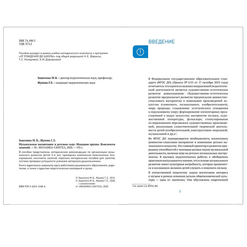 Музыкальное воспитание в детском саду.3-4 года.Конспекты занятий (ФГОС)| Автор/составитель | Жукова Г.Е., Зацепина М.Б. |