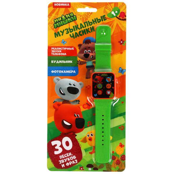 Музыкальные часики "Ми-ми-мишки" ТМ "УМка" станут прекрасным подарком для ребёнка: - 5 песен из м/ф - звуки телефона - звуки будильника и фотокамеры - яркий дизайн - удобный ремешок Музыкальные часики сделаны по мотивам известного мультсериала, поэтому придутся по вкусу его поклонникам. К тому же, это не простые часы: нажимая на кнопки, можно послушать любимые песни из мультика и забавные звуки. Музыкальные часы ТМ "УМка" развивают: - тактильные навыки - мелкую моторику - музыкальный слух - память Размер: 22 х 29 х 5 см. Материалы: пластмасса + металл. Часы работают от 3-х батареек типа LR44 (в комплекте). Рекомендовано детям от 1 года.