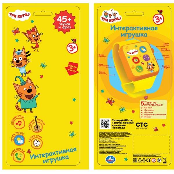 Музыкальные часы ТРИ КОТА 45 песен,звуков и фраз.блист.бат. Умка в кор.2*90шт